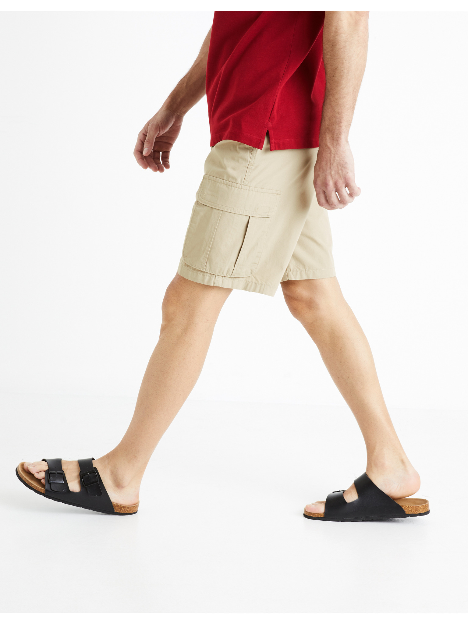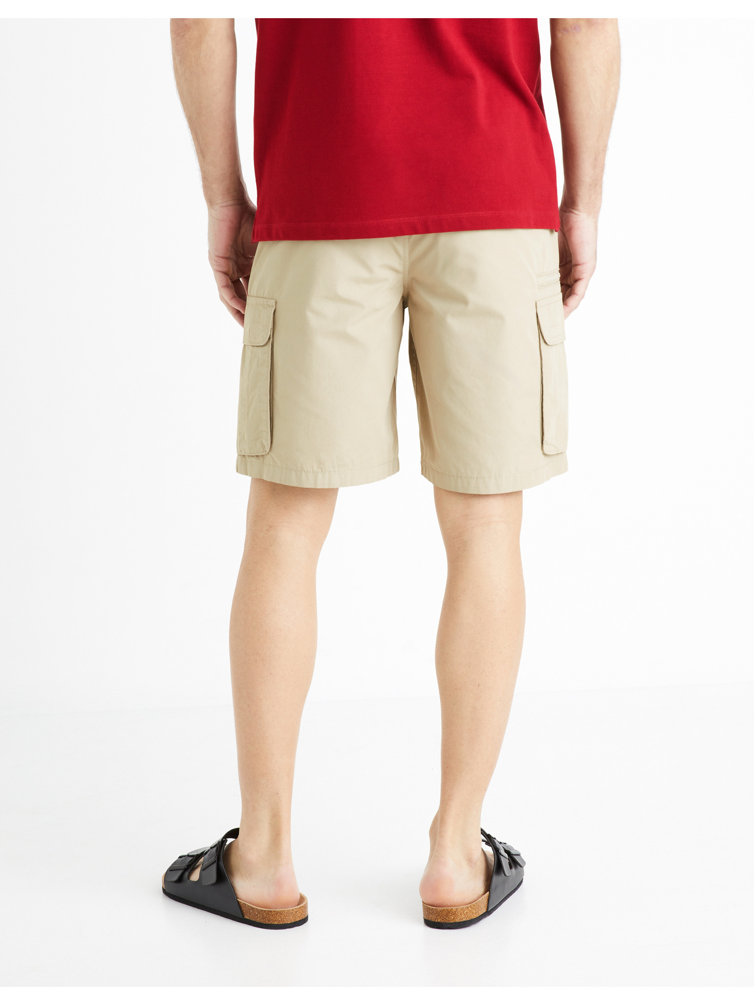 Muške jednobojne kratke kratke hlače s džepovima - pijesak V1 OM-SRCG-0133 Ombre odjeća