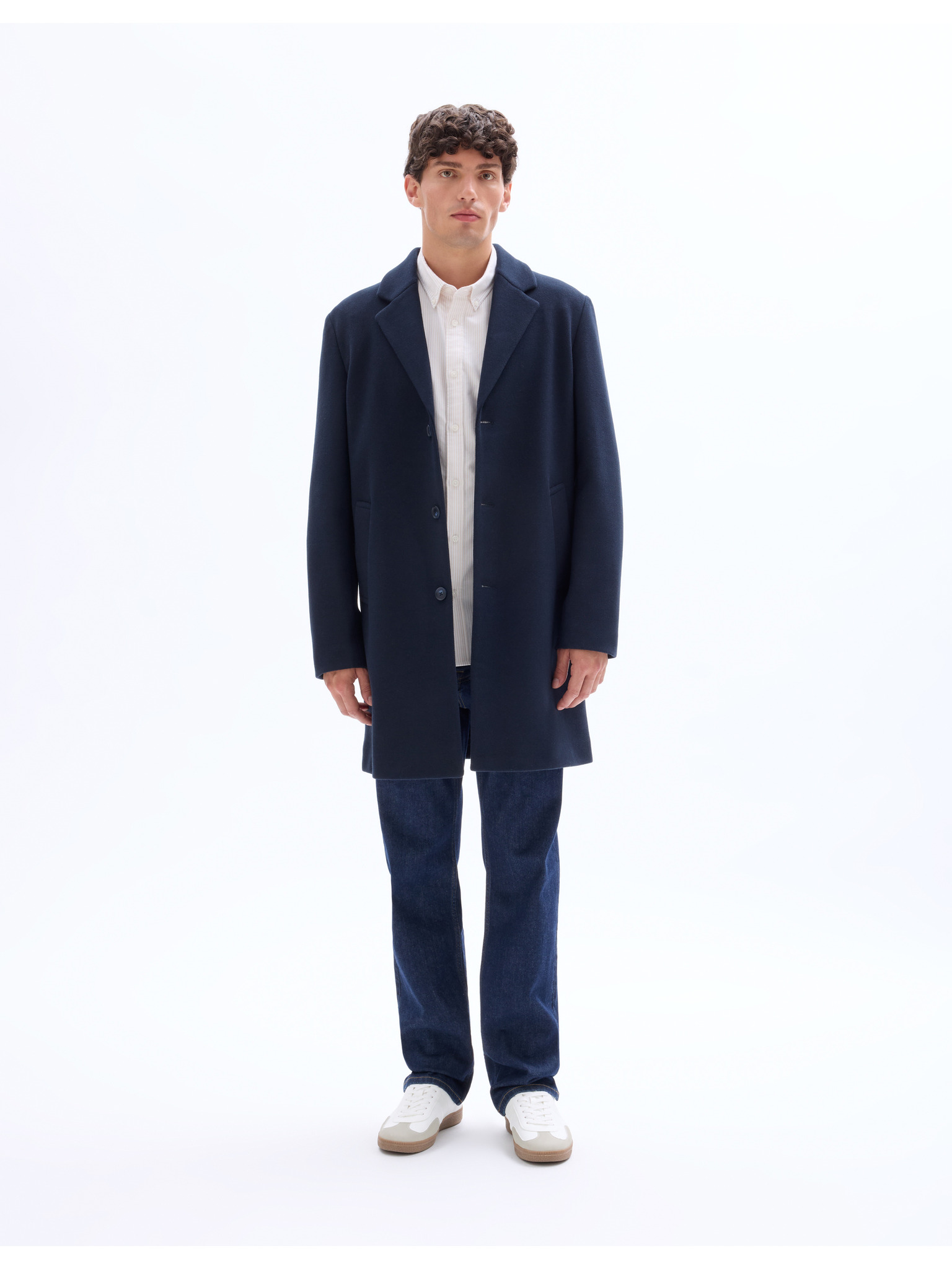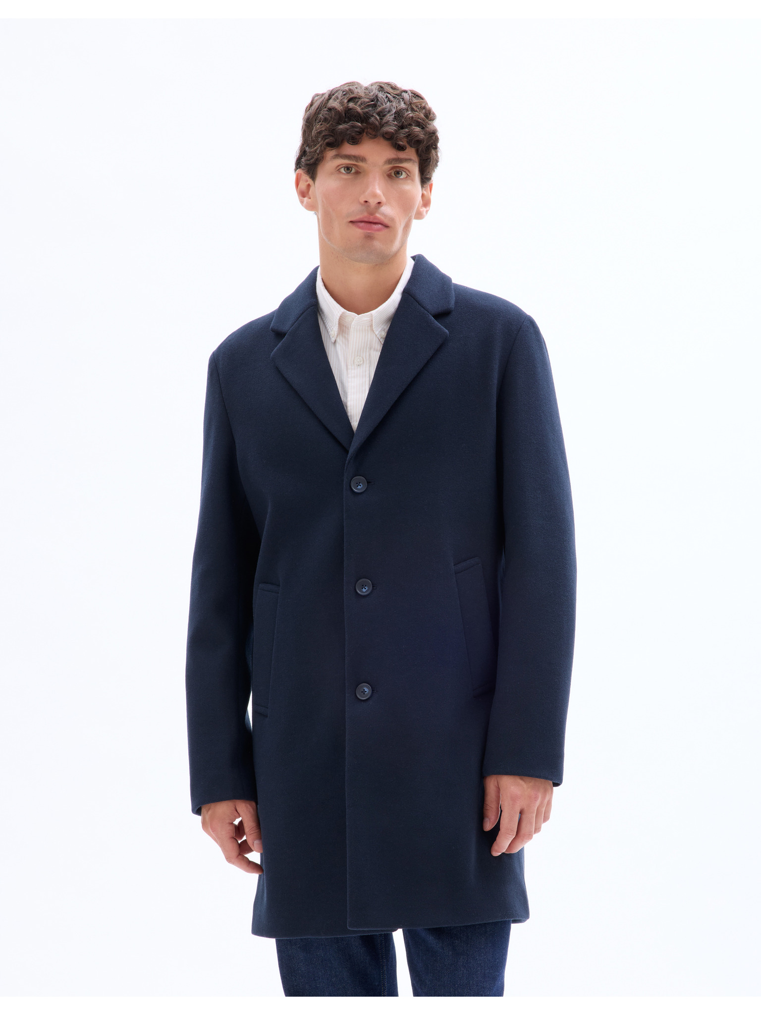 Muški kaput s asimetričnim kopčanjem i visokim ovratnikom tamnoplava Ombre odjeća