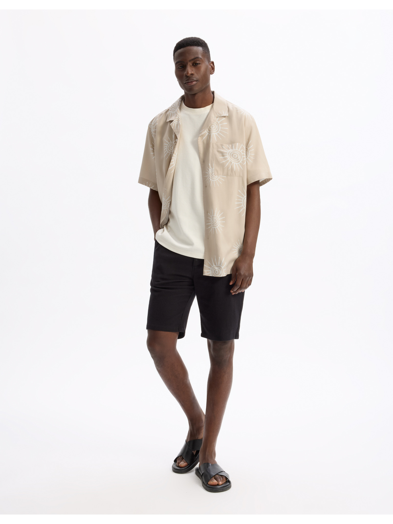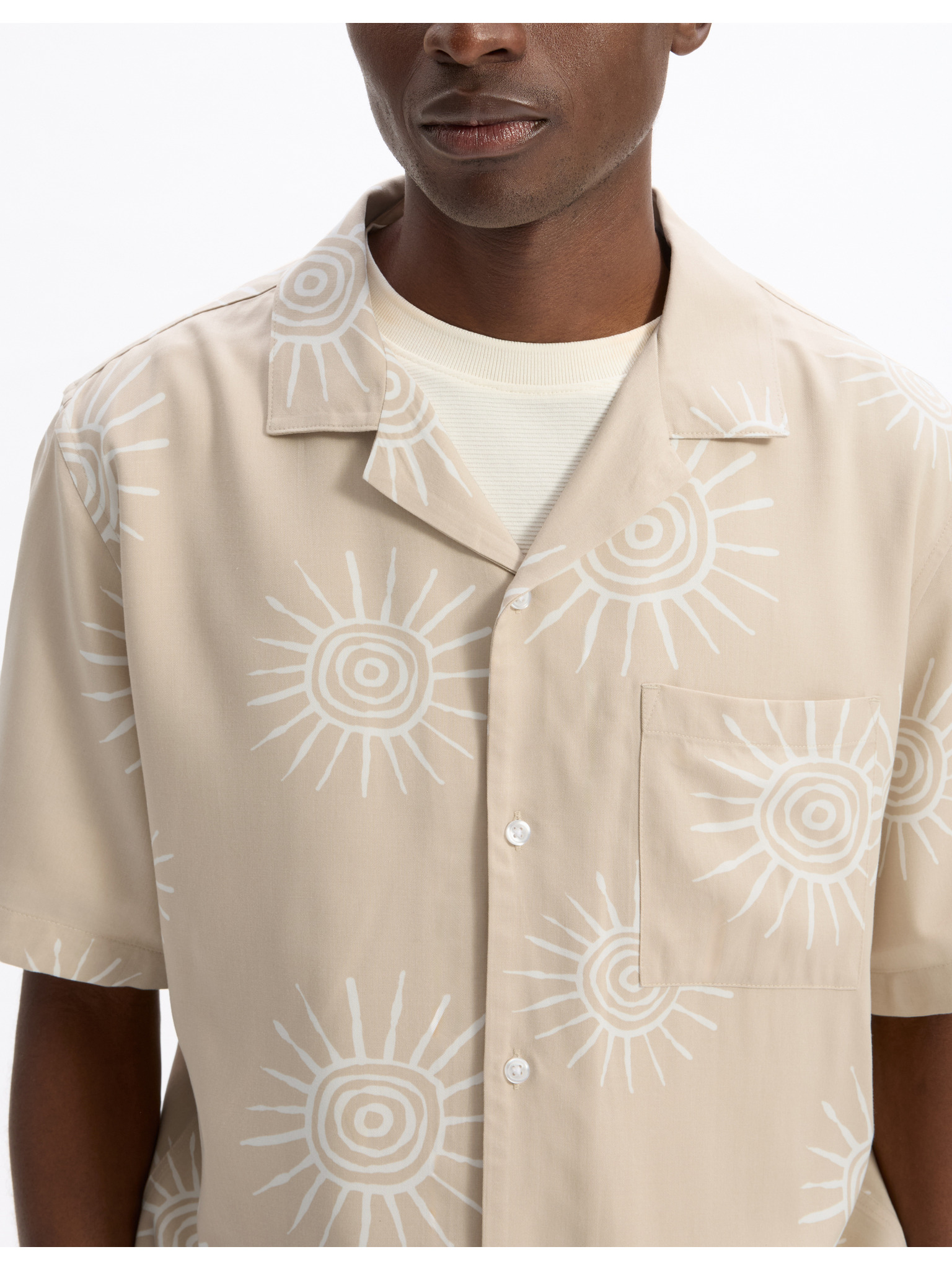 Muška košulja s kratkim rukavima i kubanskim ovratnikom bež Ombre odjeća