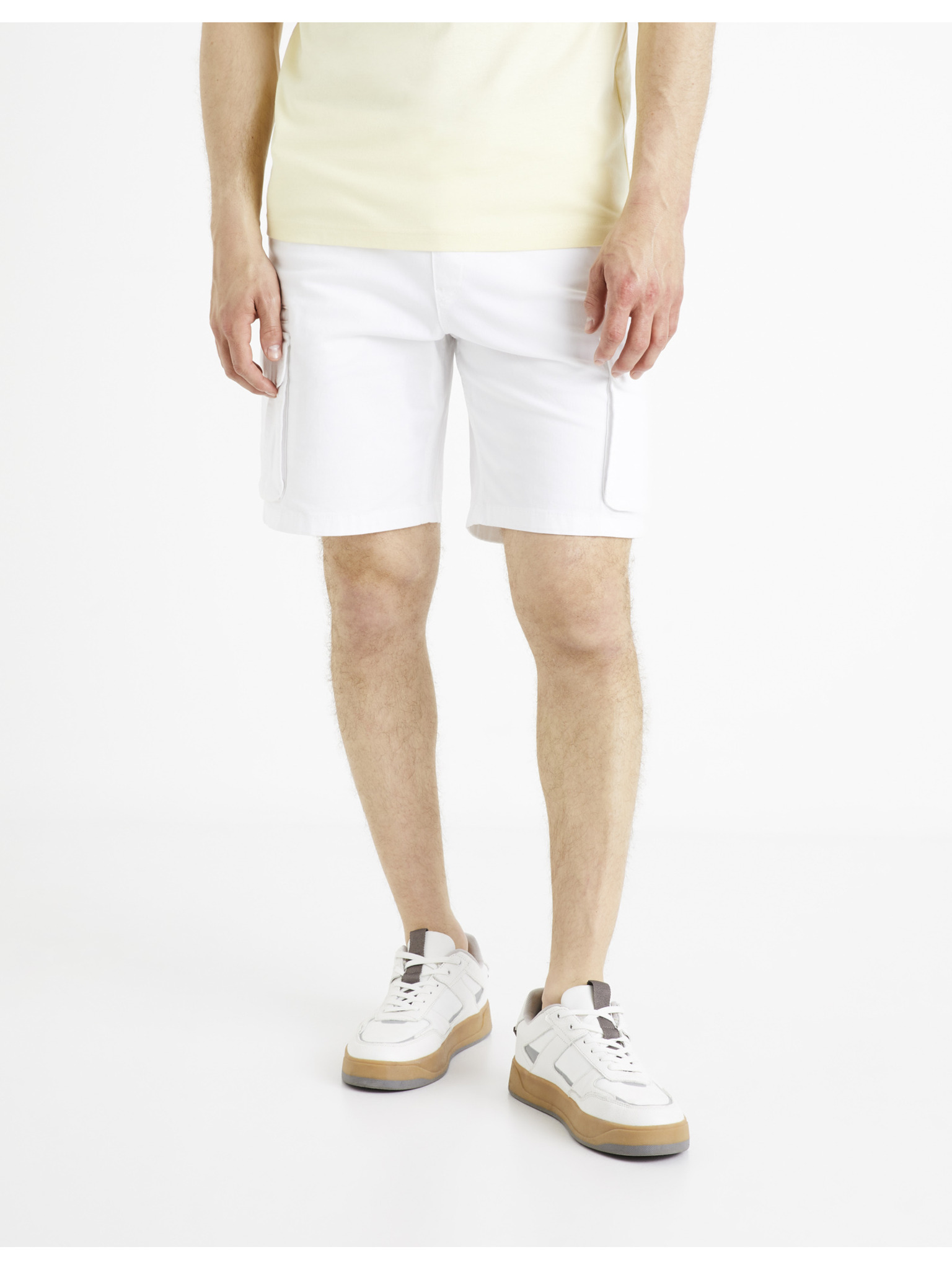Muške kratke hlačice labavog kroja s cargo džepovima - krem