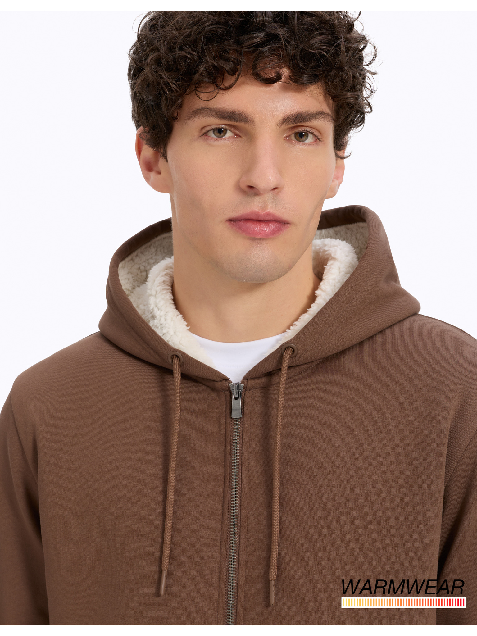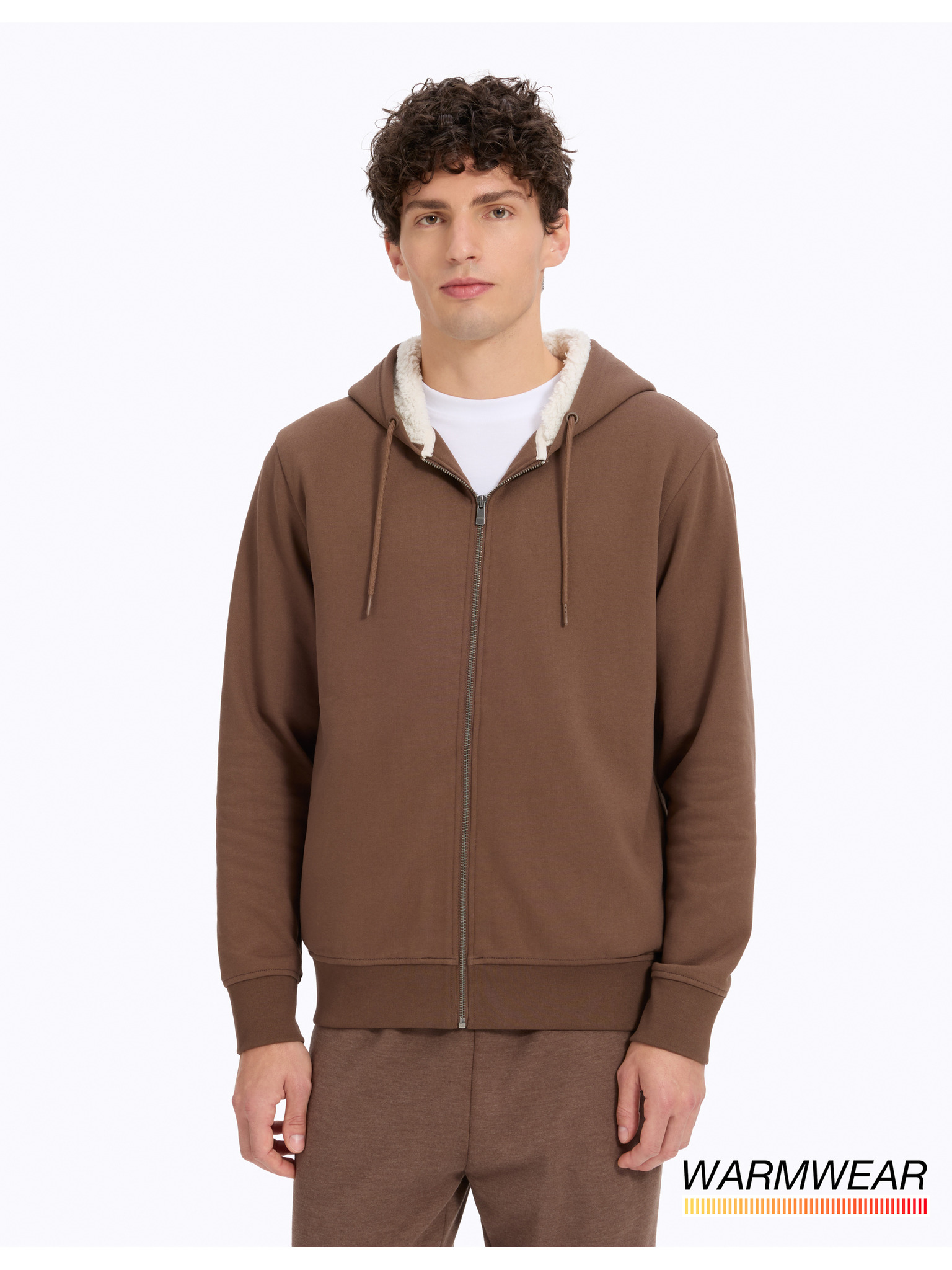 Smeđa muška osnovna majica s kapuljačom na patentni zatvarač Ombre Clothing