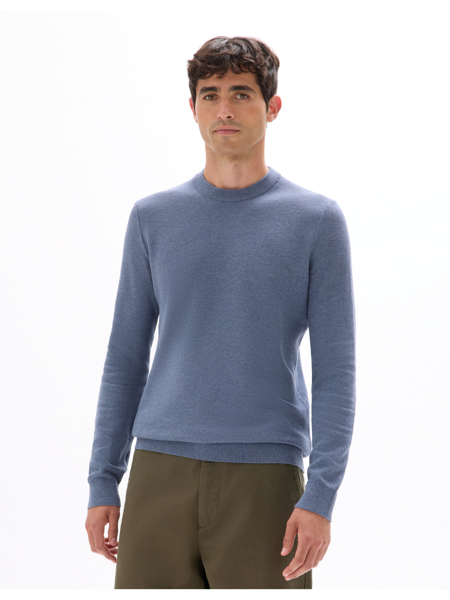 Muški pleteni pulover sa strukturiranim točkicama - tamnoplava Ombre odjeća