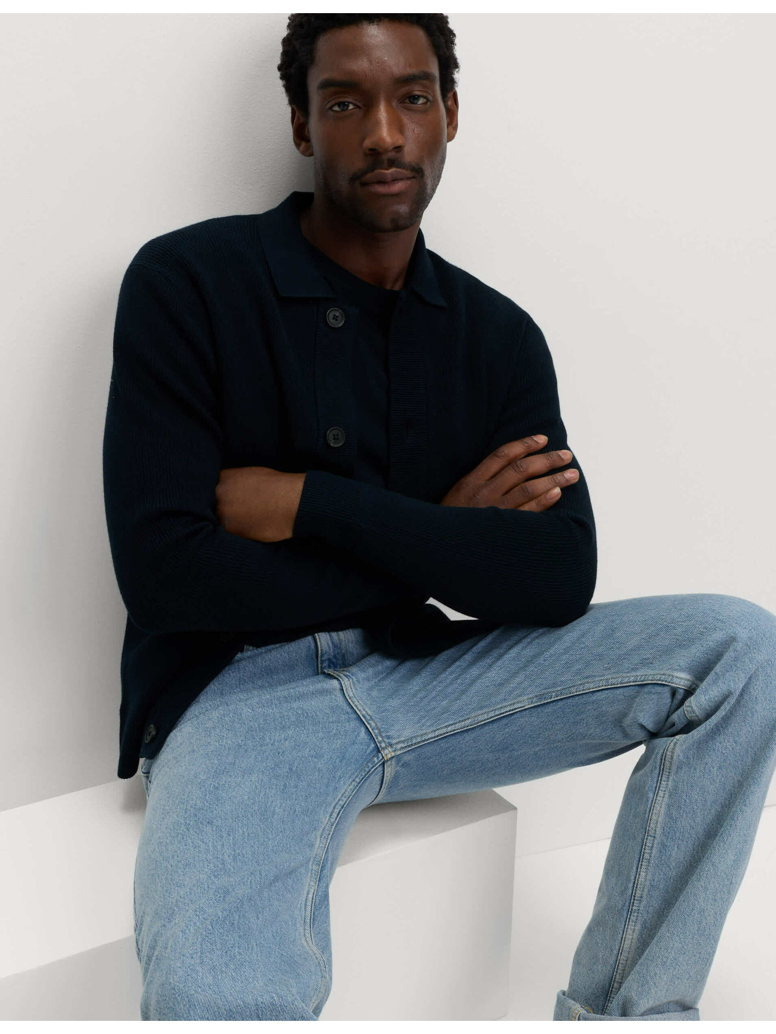 Džemper od čistog pamuka, s ovratnikom Marks & Spencer mornarsko plava