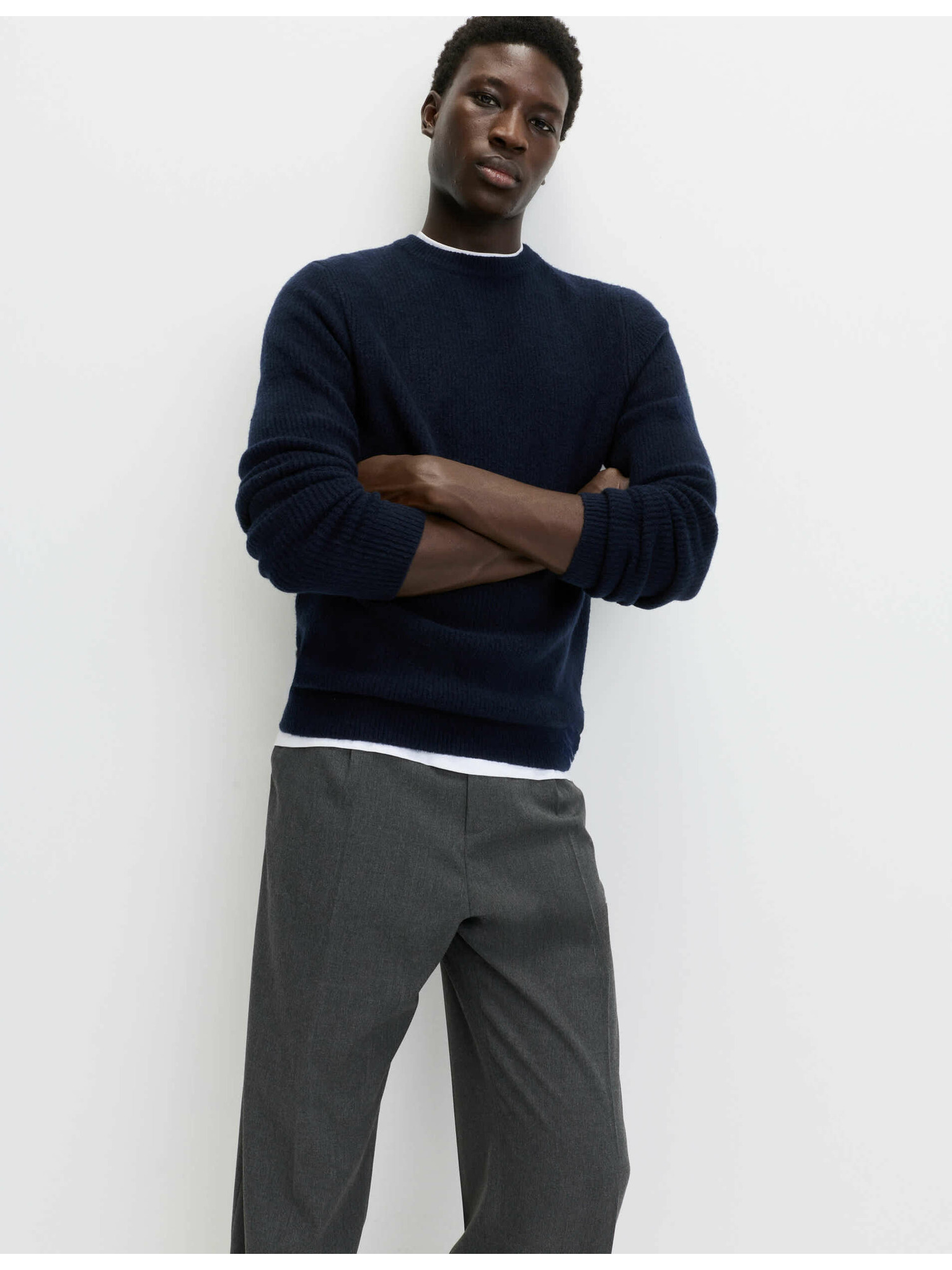 Muški pleteni pulover sa strukturiranim točkicama - tamnoplava Ombre odjeća