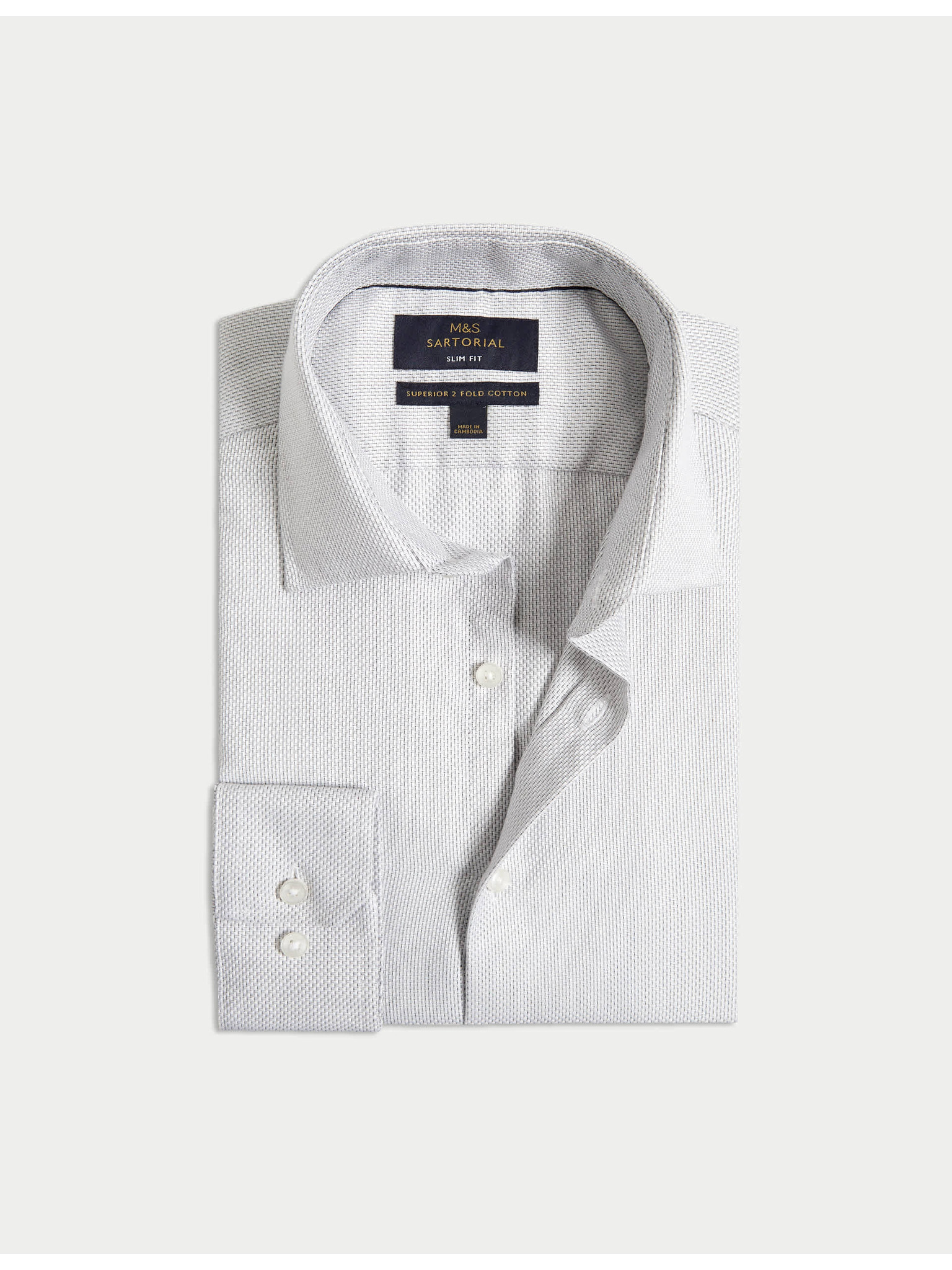 Kepер košulja slim kroja od luksuznog pamuka s dvostrukom manžetnom Marks & Spencer mornarsko plava