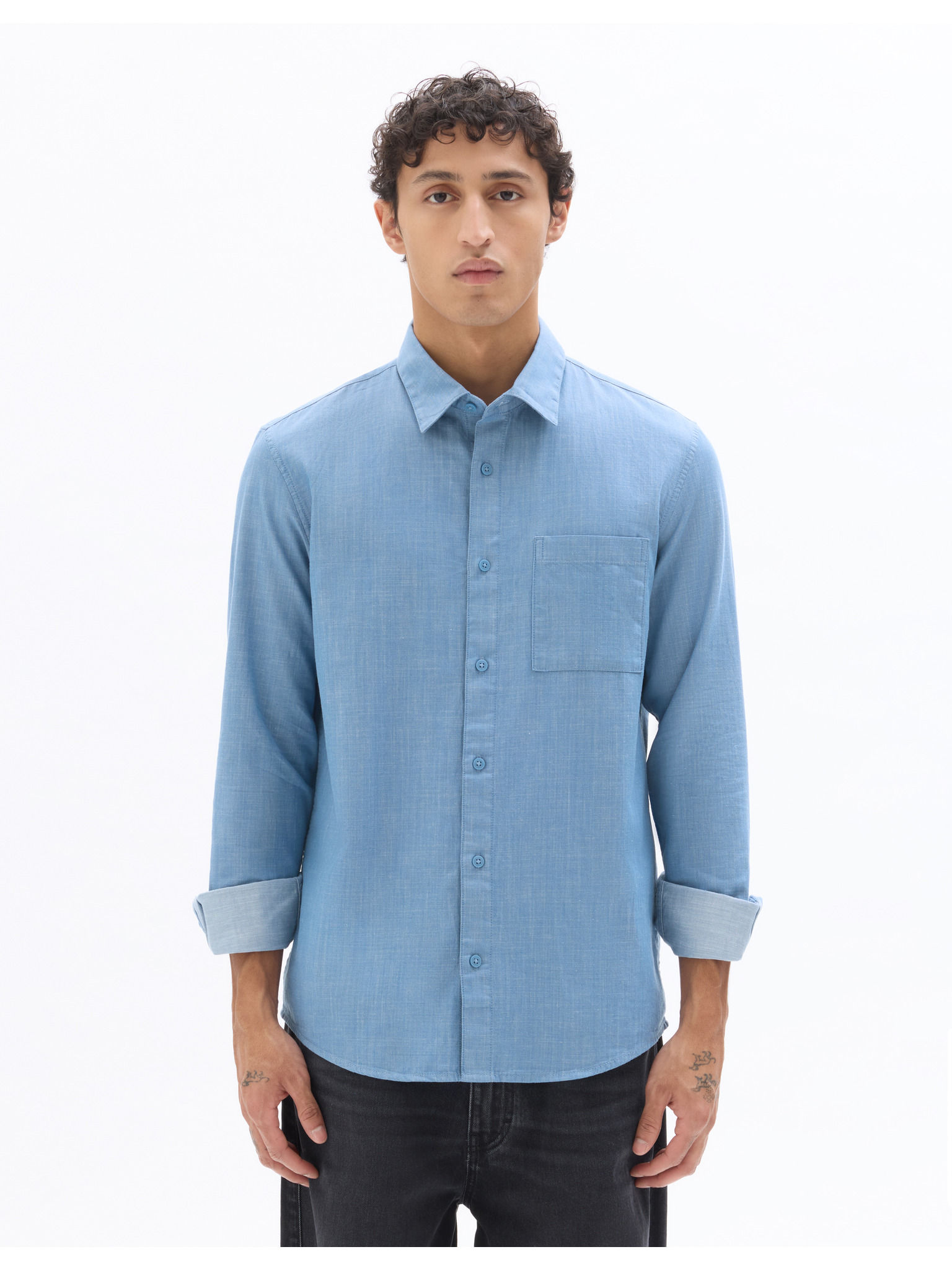 Muška traper košulja s izvezenim džepom - svijetloplava Ombre odjeća