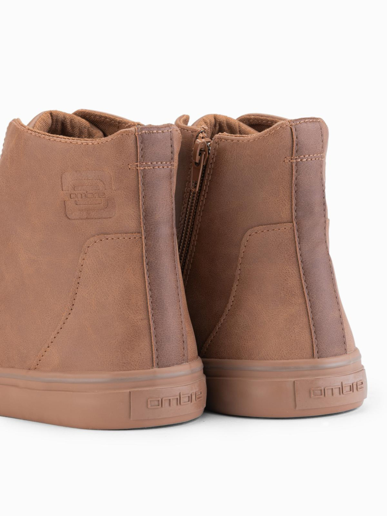 Muške visoke tenisice sa zipom za jednostavno obuvanje - tamno bezova V3 OM-FOTH-0184 Ombre Clothing