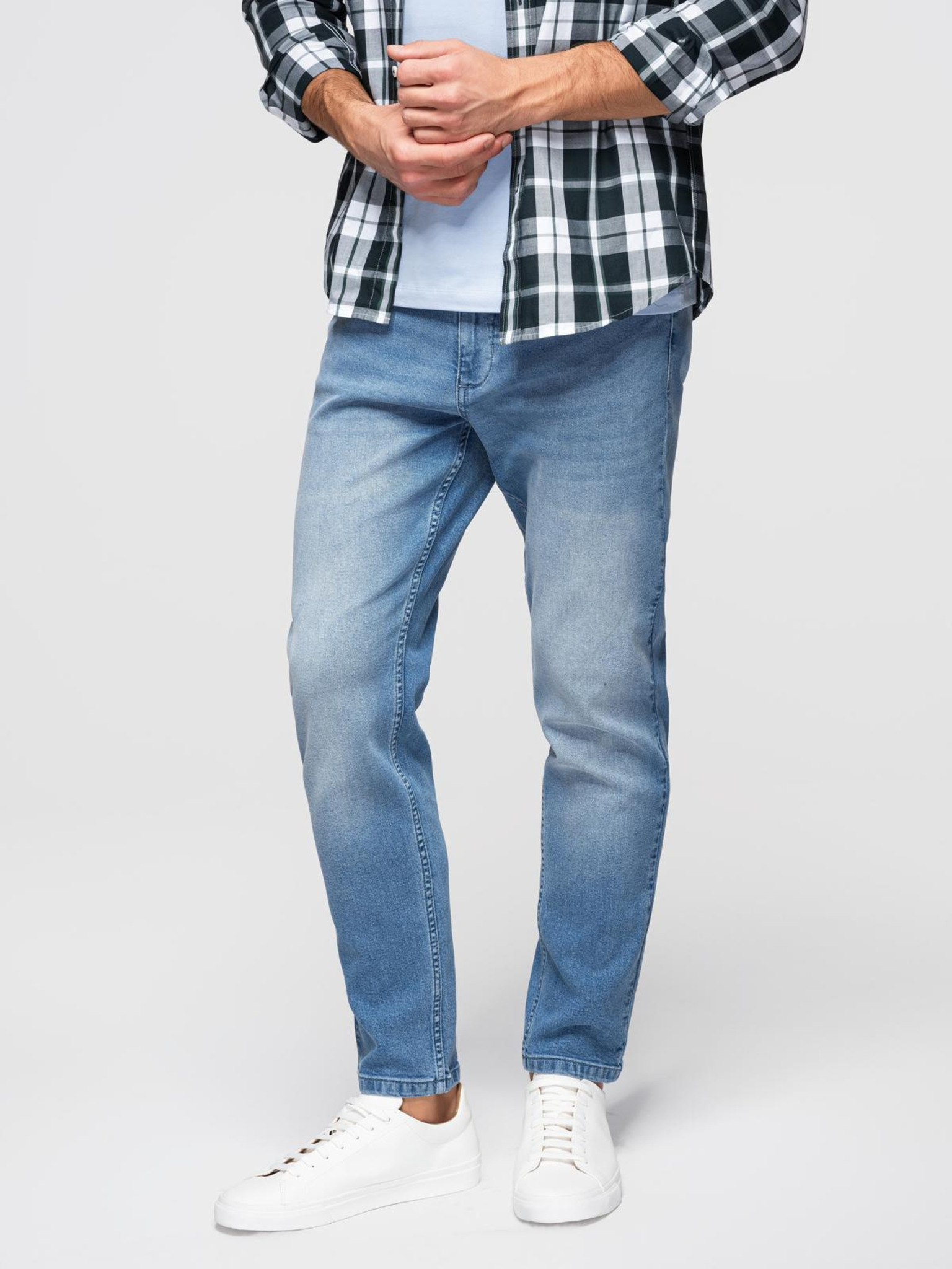 Muške traper hlače CARROT s prslinama - svetlo plave V1 OM-PADP-0253 Ombre Clothing