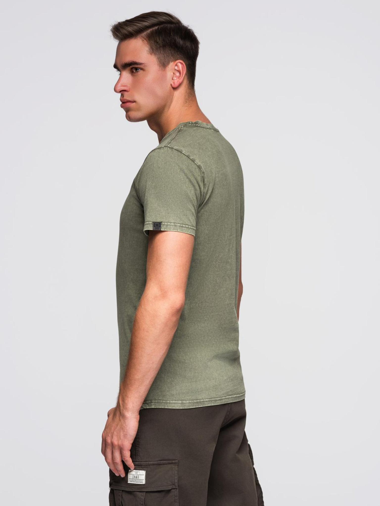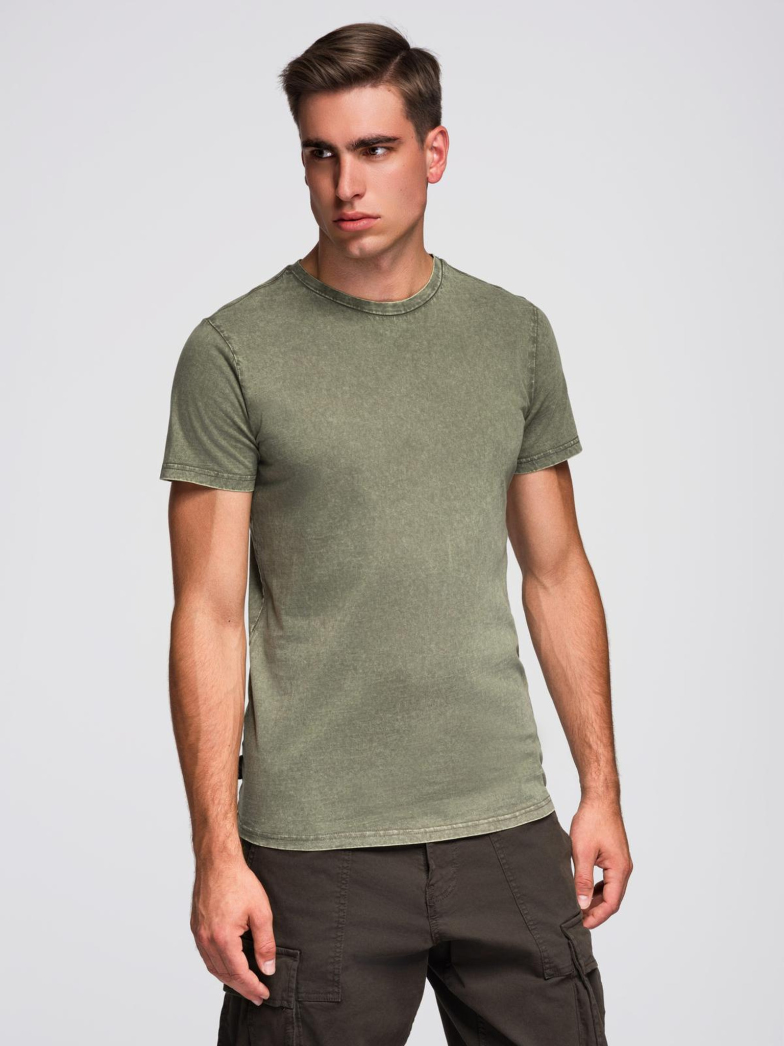 Muška pamučna majica LOOSE FIT s okruglim vratom - sivozelena V3 OM-TSBC-0267 Ombre Clothing