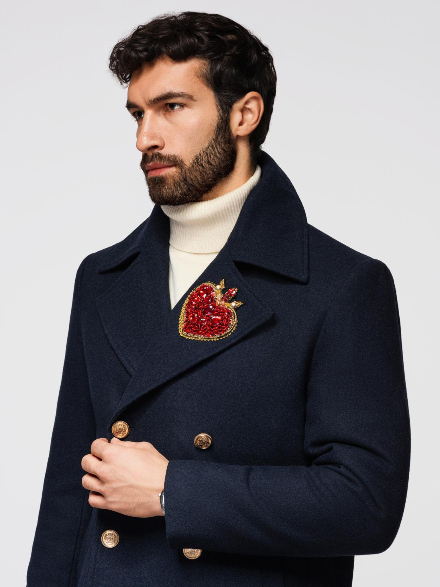 Muški dvoredan kaput s ukrasnim gumbima - crni V2 OM-COWC-0137 Ombre Clothing