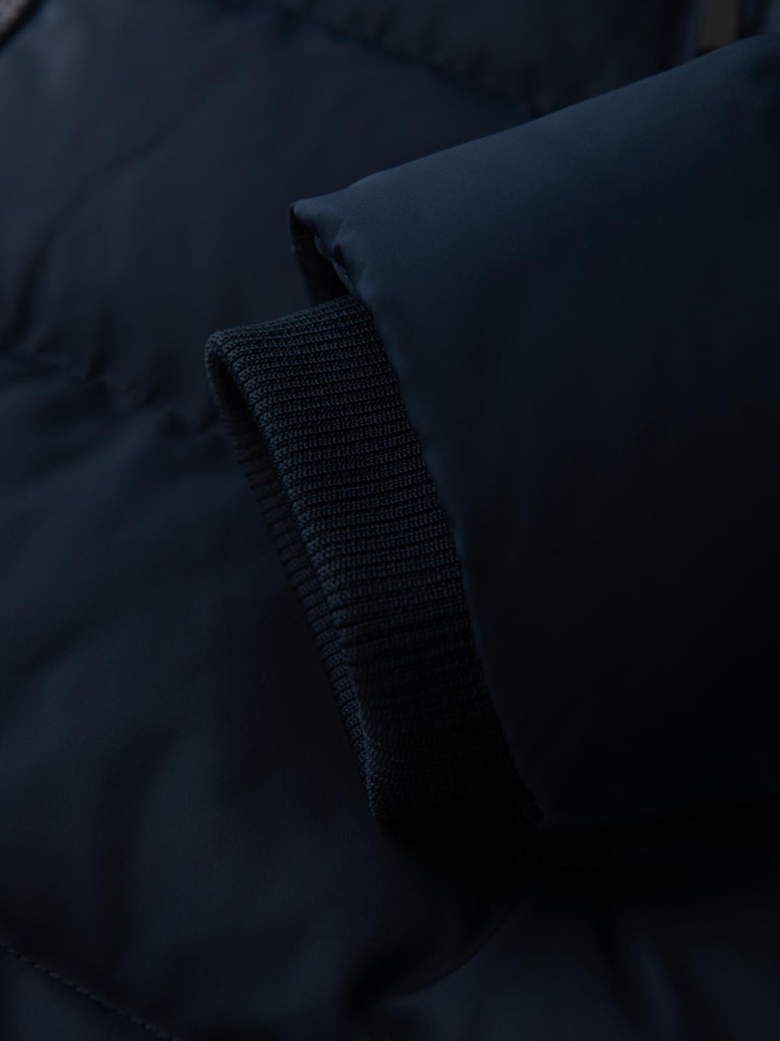 Prošivana bomber jakna s kapuljačom i pletenim rukavima - tamno plava V2 OM-JALP-0298 Ombre Clothing