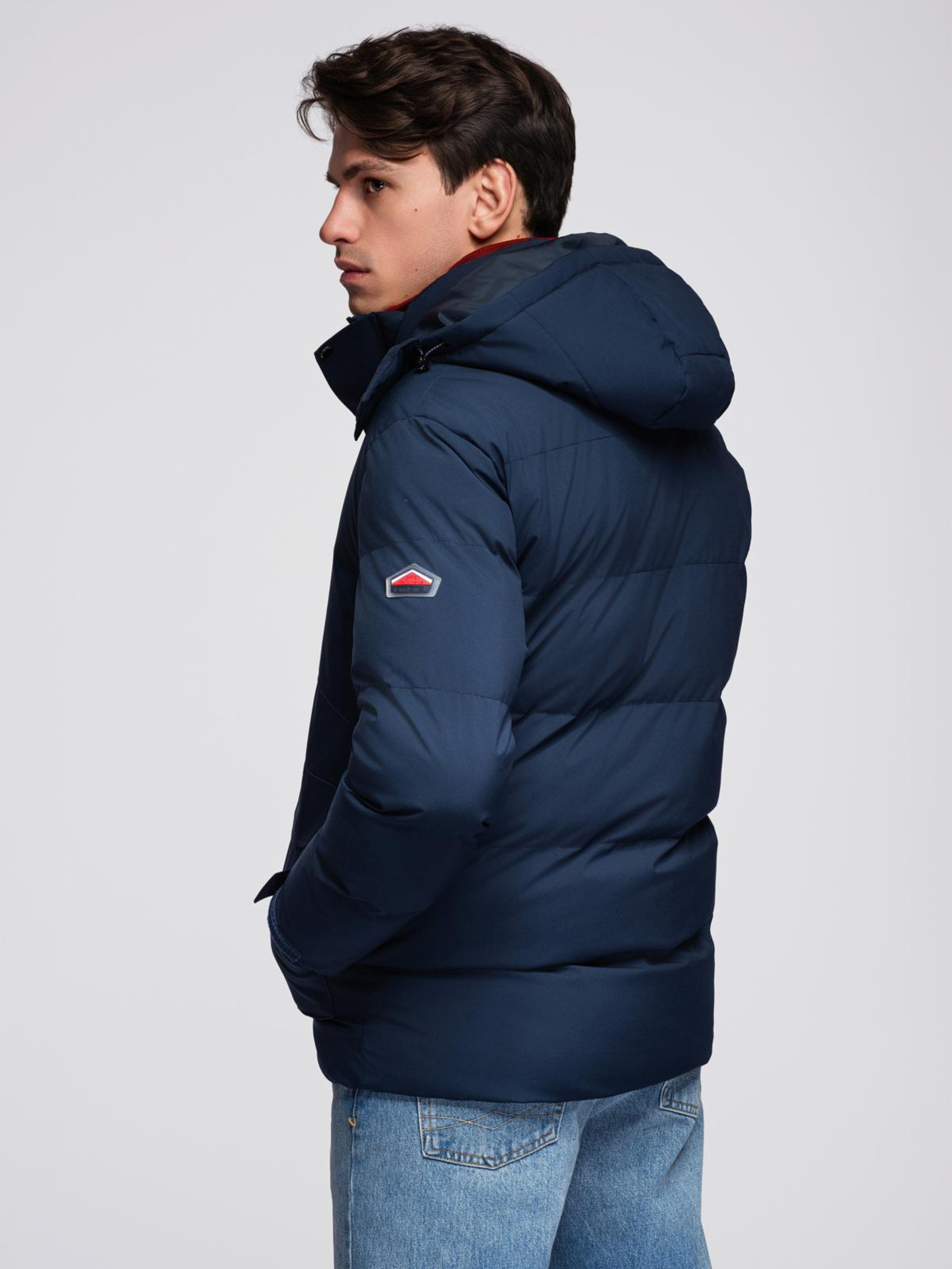 Muška prošivana jakna s kapuljačom - tamno plava V4 OM-JAHP-0235 Ombre Clothing