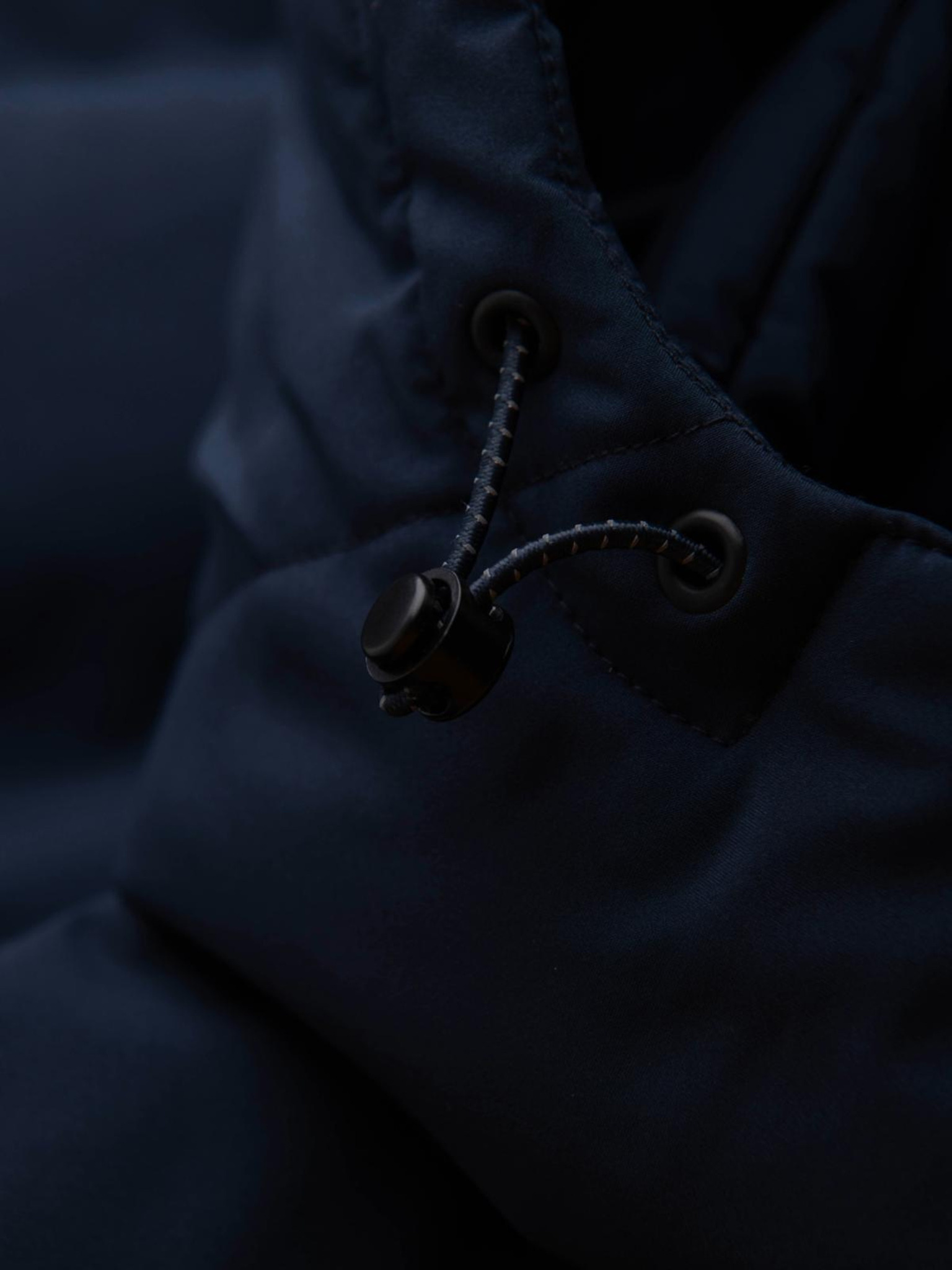 Muška jakna s asimetričnim prošivanjem i kapuljačom - tamno plava V4 OM-JAHP-0304 Ombre Clothing