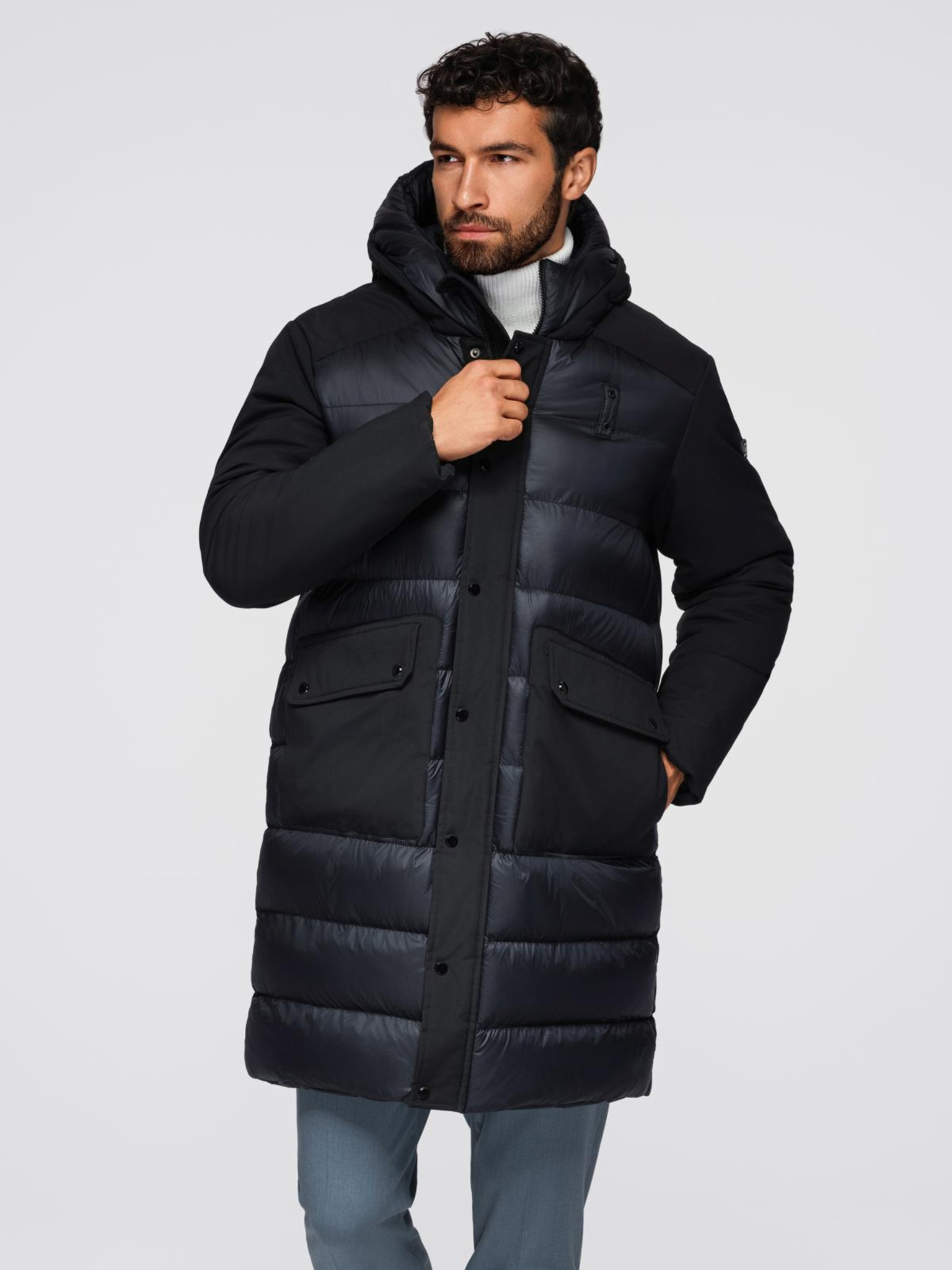 Muška dugačka stepana jakna s prirodnim punjenjem - crna V1 OM-JALJ-0212 Ombre Clothing