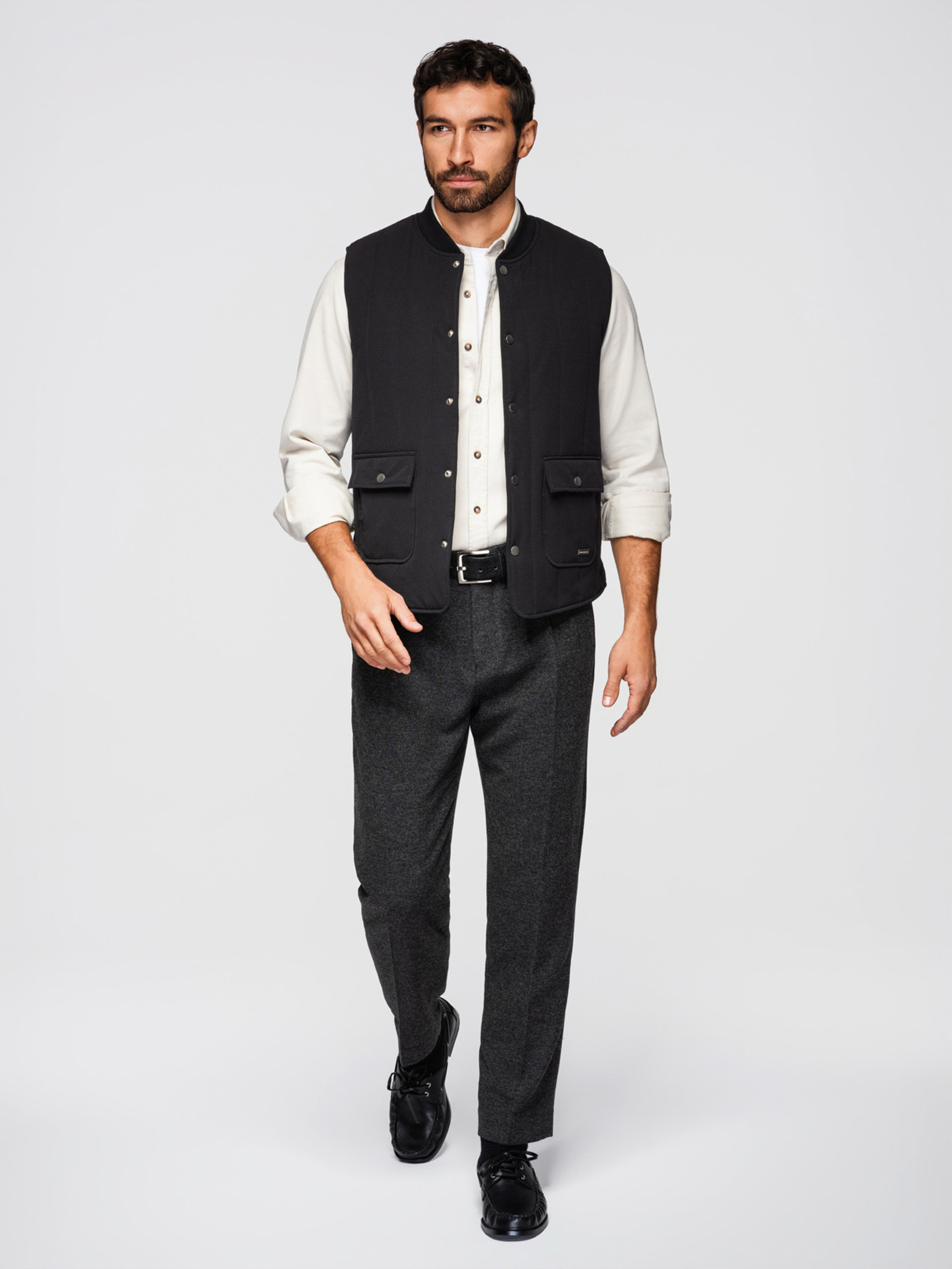 Muška prošivana elegantan prsluka - grafitni melir V1 OM-JAVJ-0275 Ombre Clothing