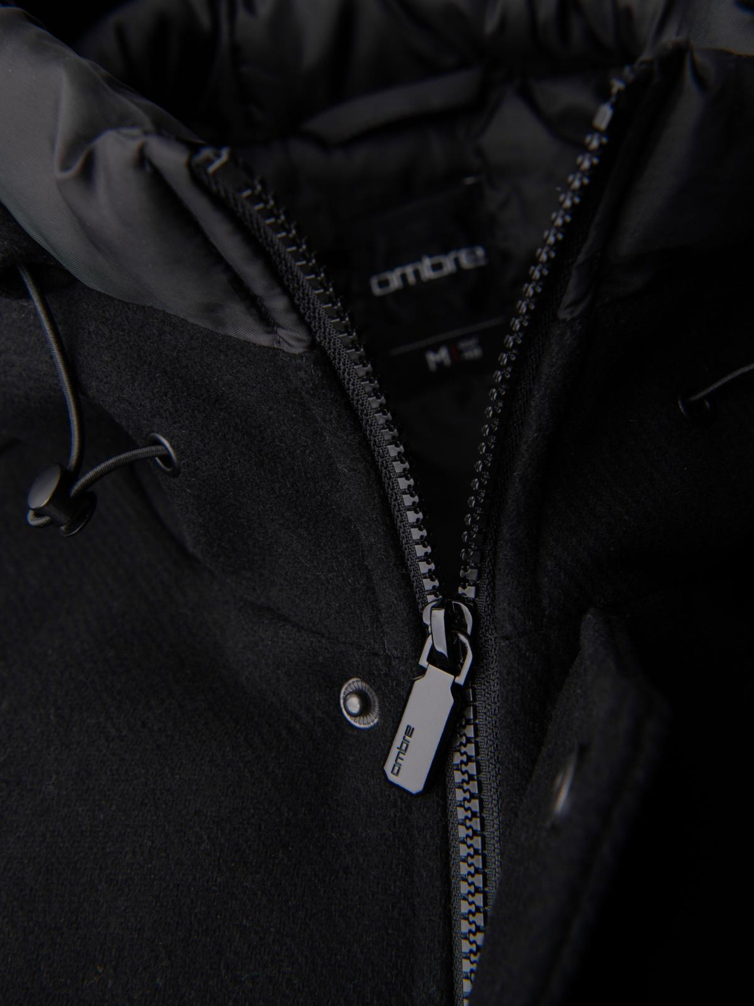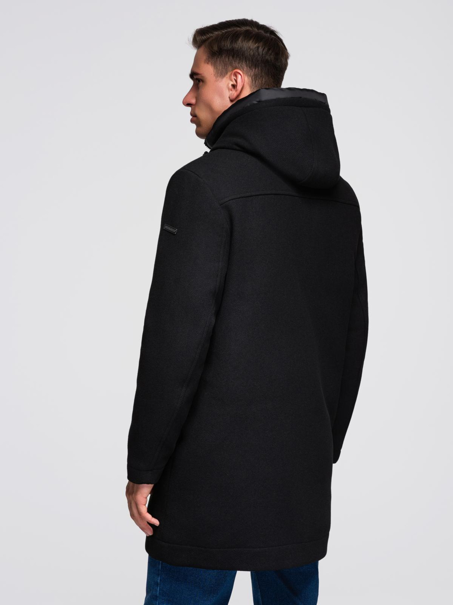 Muški minimalistički kaput srednje duljine s kapuljačom - crni V4 OM-COLC-0144 Ombre Clothing