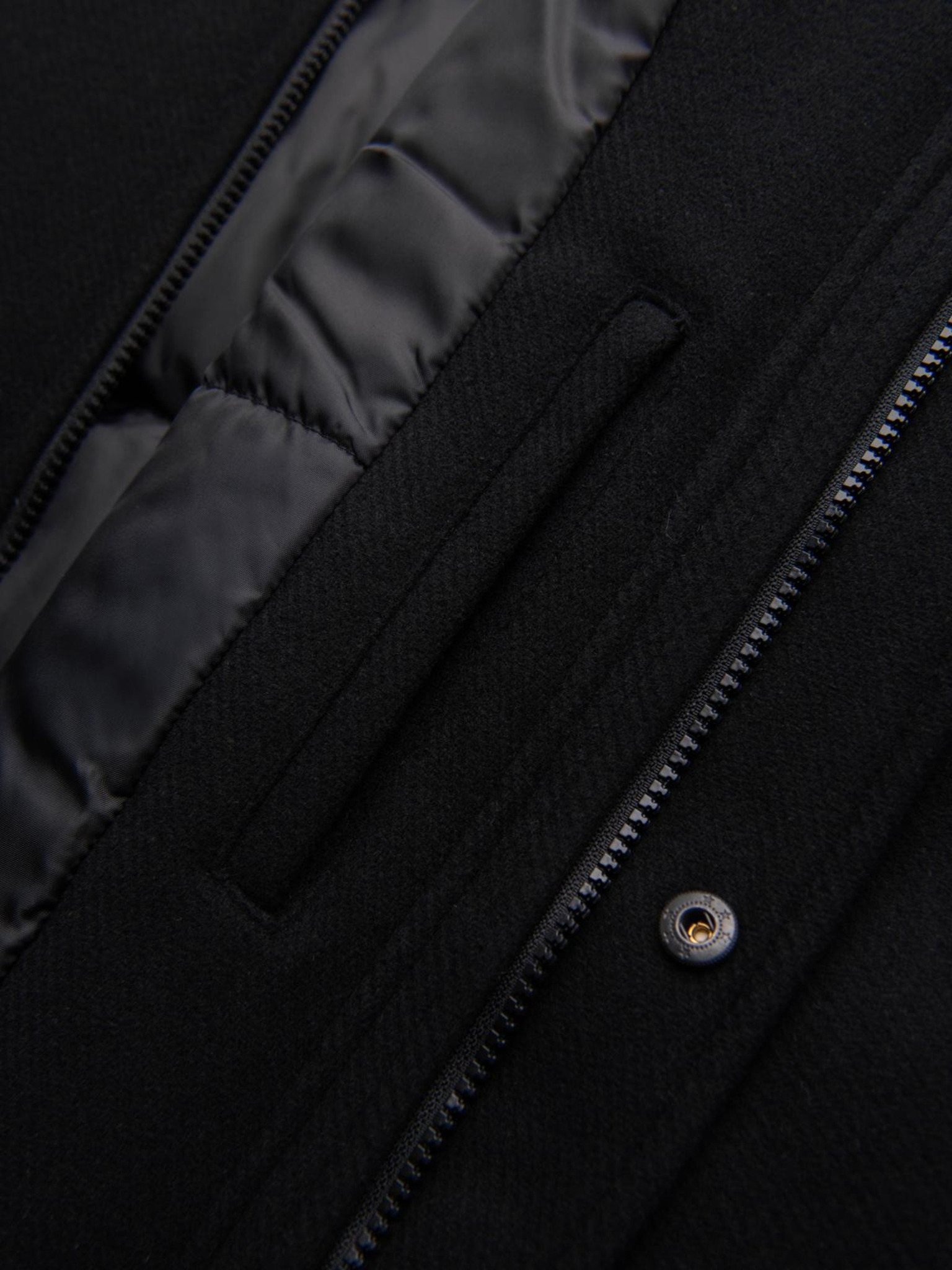Muški kaput s visokim ovratnikom i asimetričnim zapinjanjem - crna V2 OM-COWC-0141 Ombre Clothing