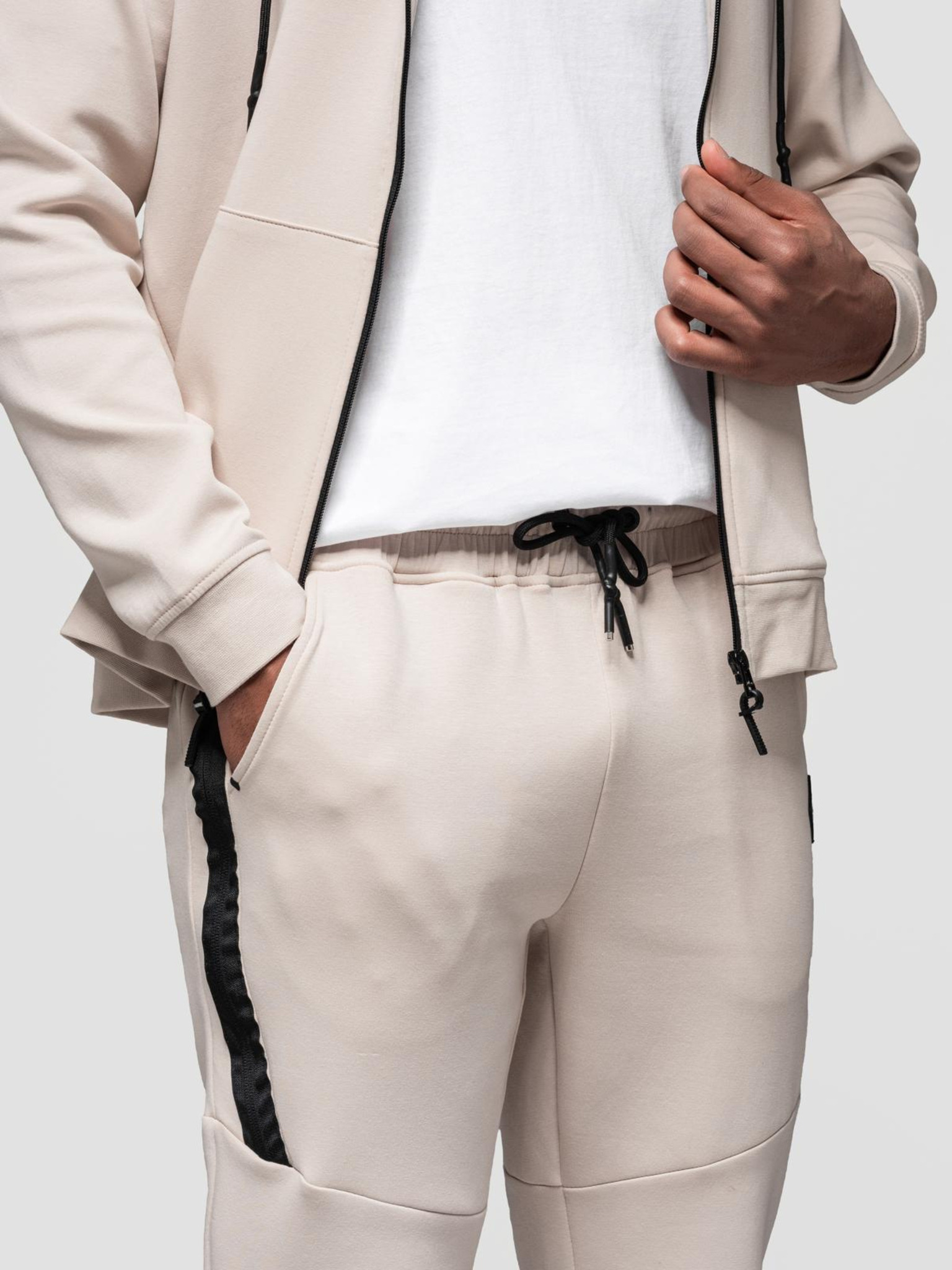 Muški komplet za zagrijavanje hoodie + jogger hlače - svijetla bež V6 Z116 Ombre Clothing
