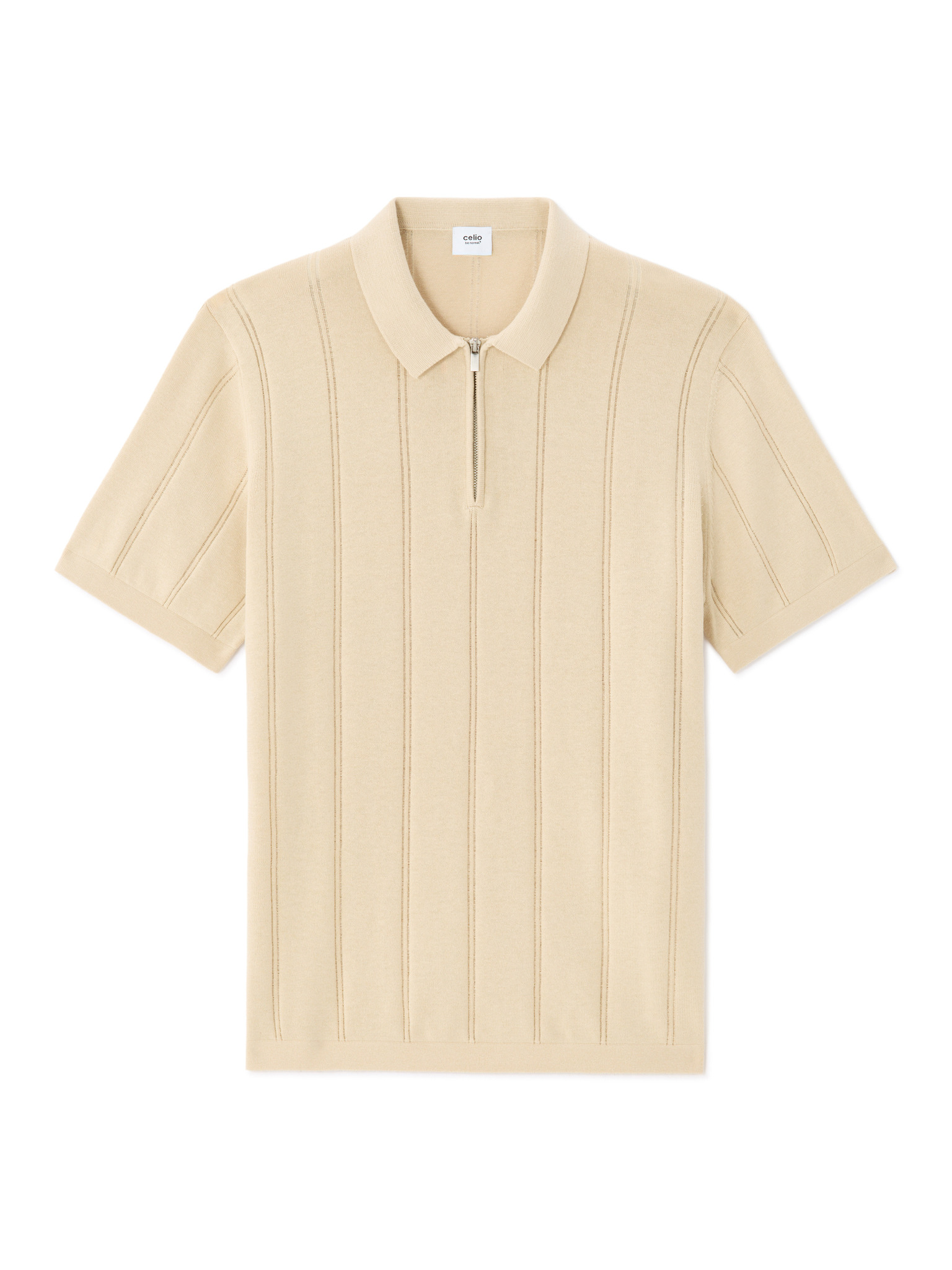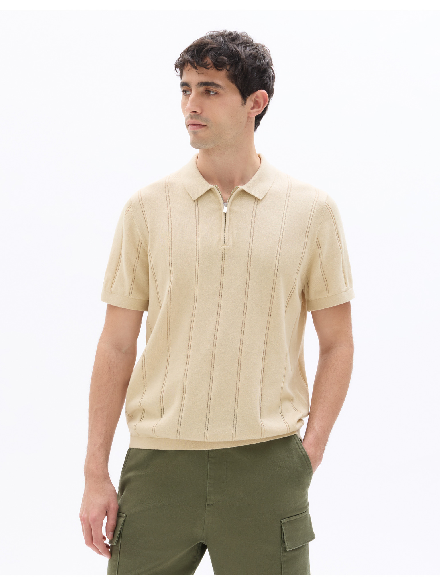 Muška elegantna polo majica od elastične tkanine - kremasta V2 OM-POSS-0150 Ombre Clothing