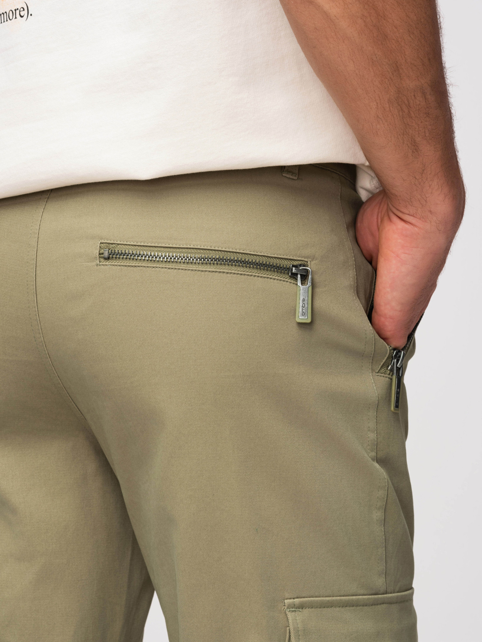 Muške hlače s ravnim nogavicama i patentnim džepovima - kaki V3 P1517 Ombre Clothing