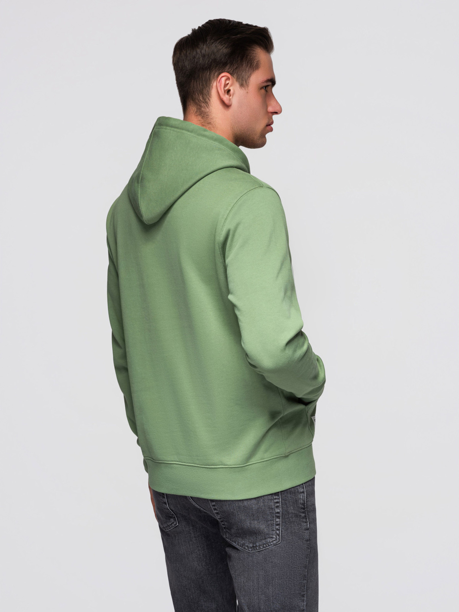 Muška pamučna majica BASIC na rajsferslus s kapuljačom - zelena V3 OM-SSBZ-0272 Ombre Clothing