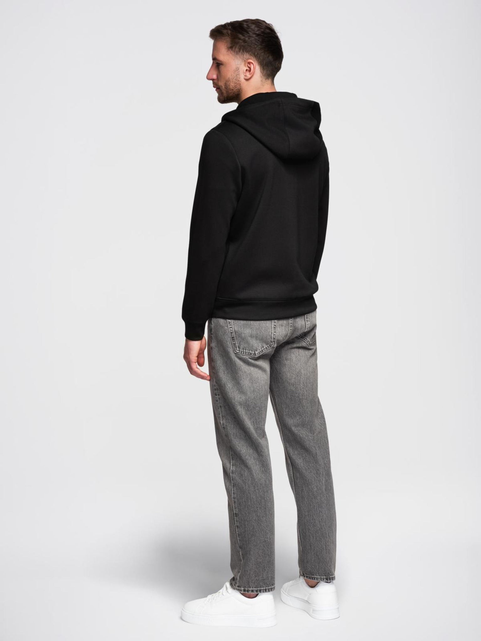 Muška mikina s stojećim ovratnikom i kapuljačom - crna V1 OM-SSZP-0216 Ombre Clothing