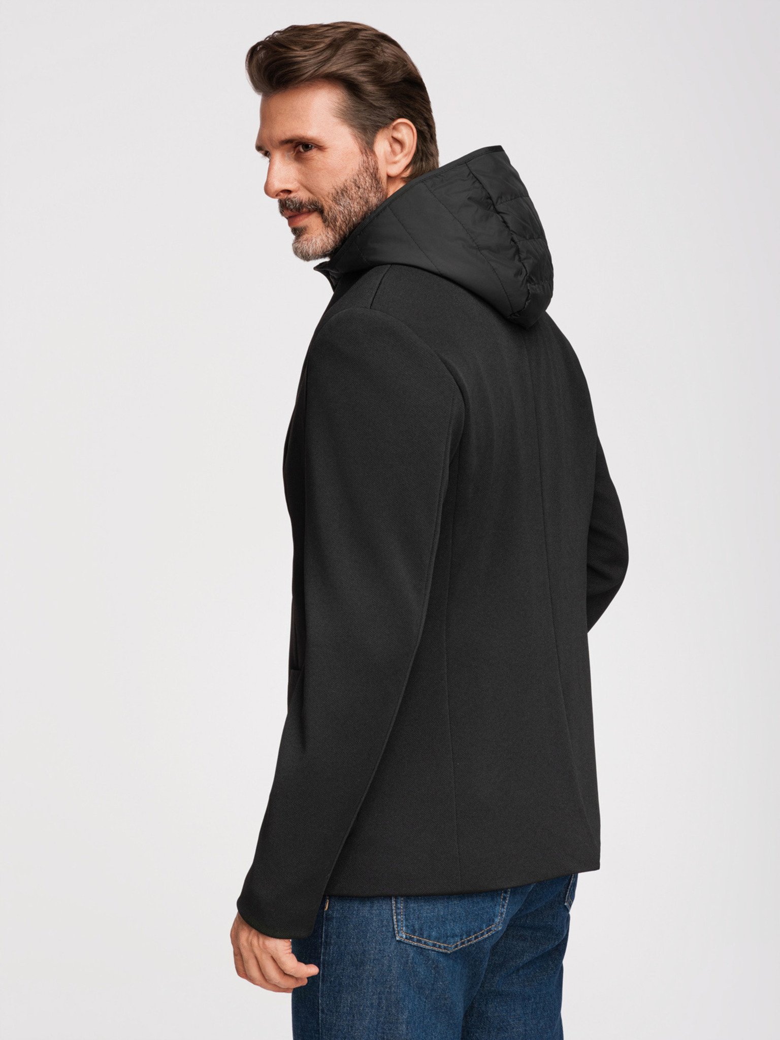 Muška strukturirana jakna s visokim ovratnikom i kapuljačom - svijetlo smeđa V1 M167 Ombre Clothing