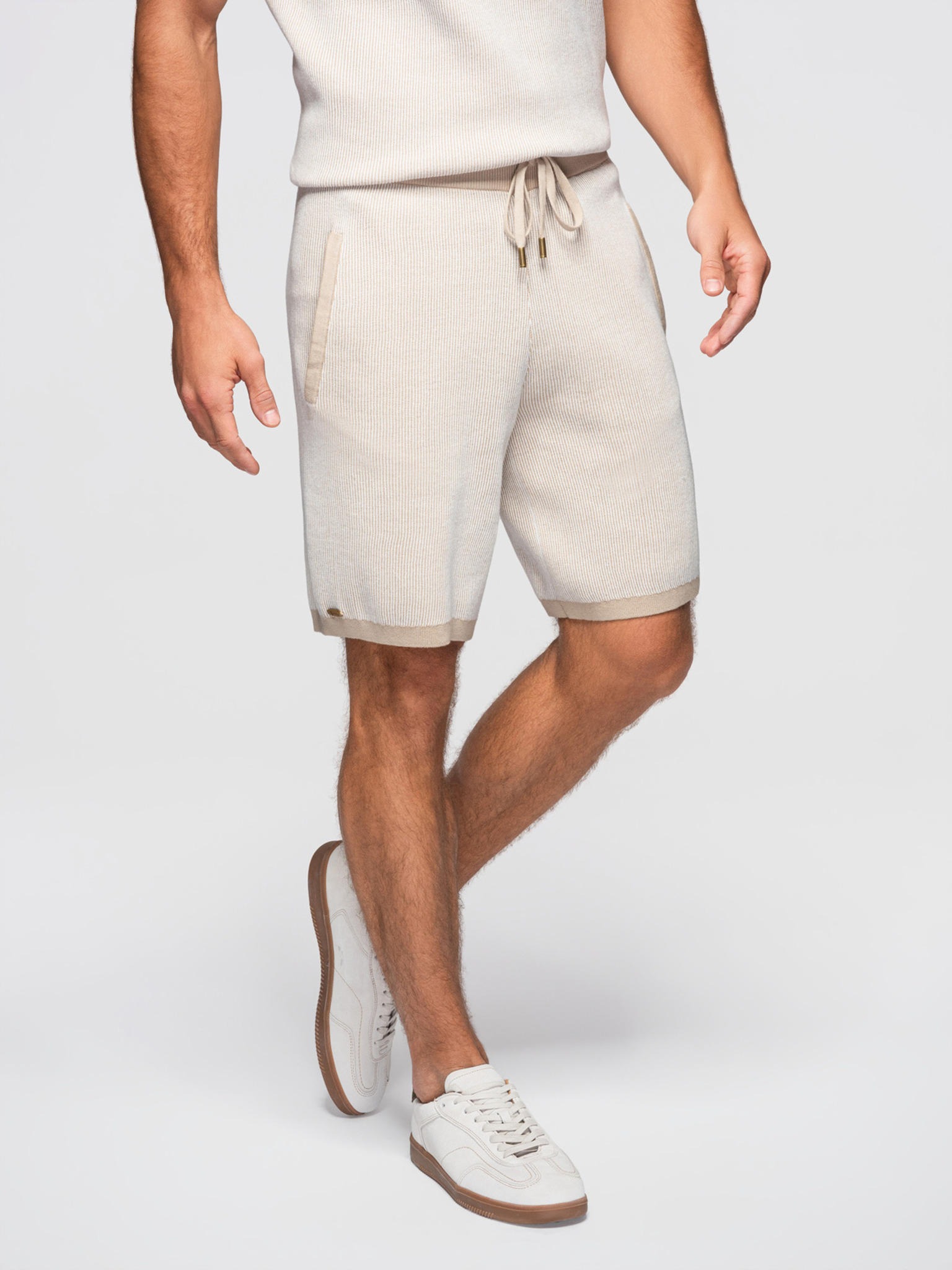 Muške šorts REGULAR FIT od glatkog pletiva - bež V3 OM-SRBC-0153 Ombre Clothing