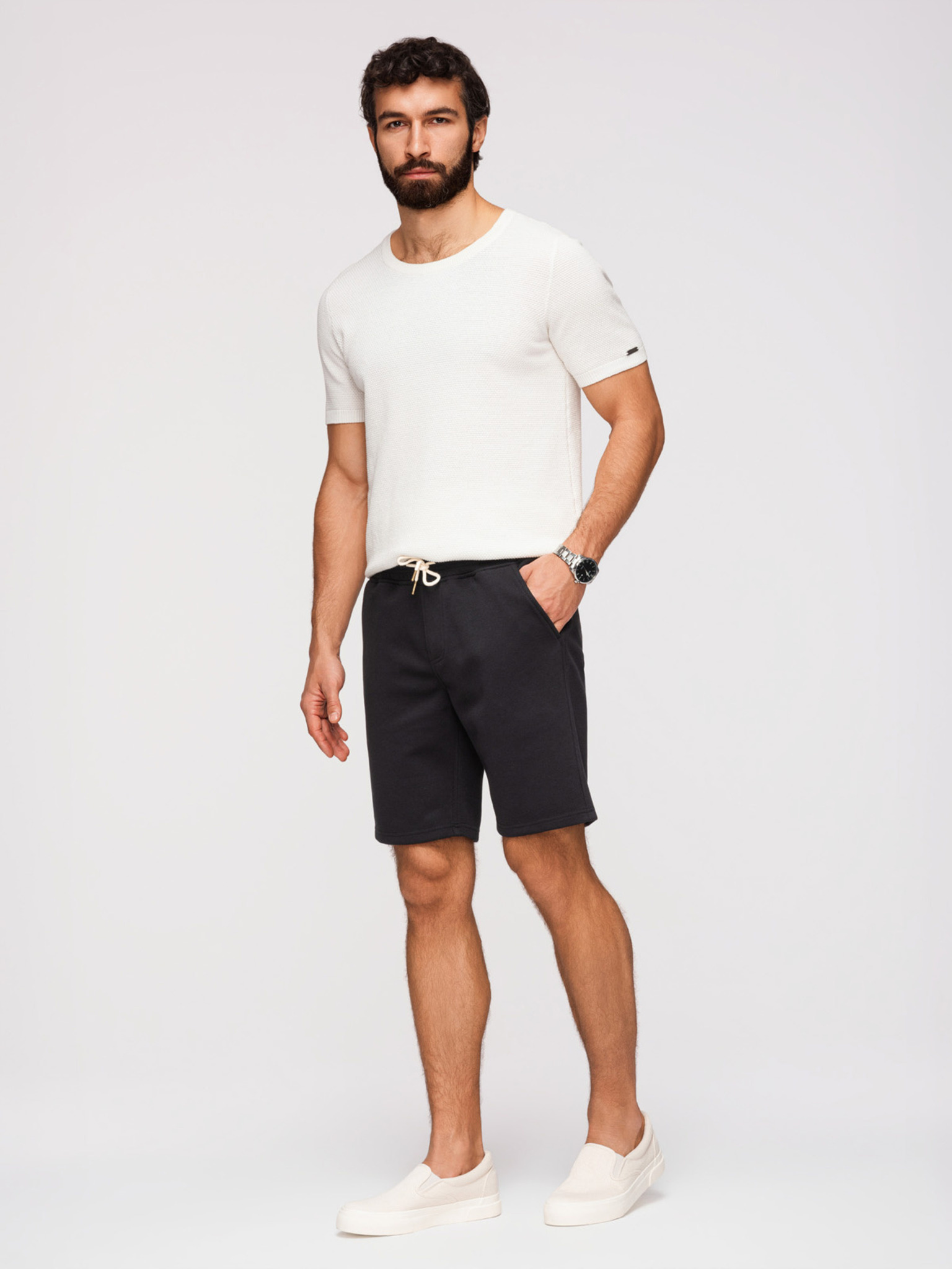 Muške pletene šorts sa podesivim strukom - bež V1 OM-SRCS-0202 Ombre Clothing