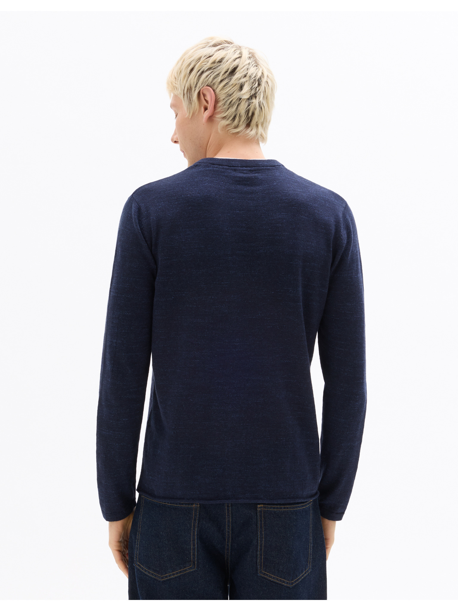 Muški pleteni pulover sa strukturiranim točkicama - tamnoplava Ombre odjeća