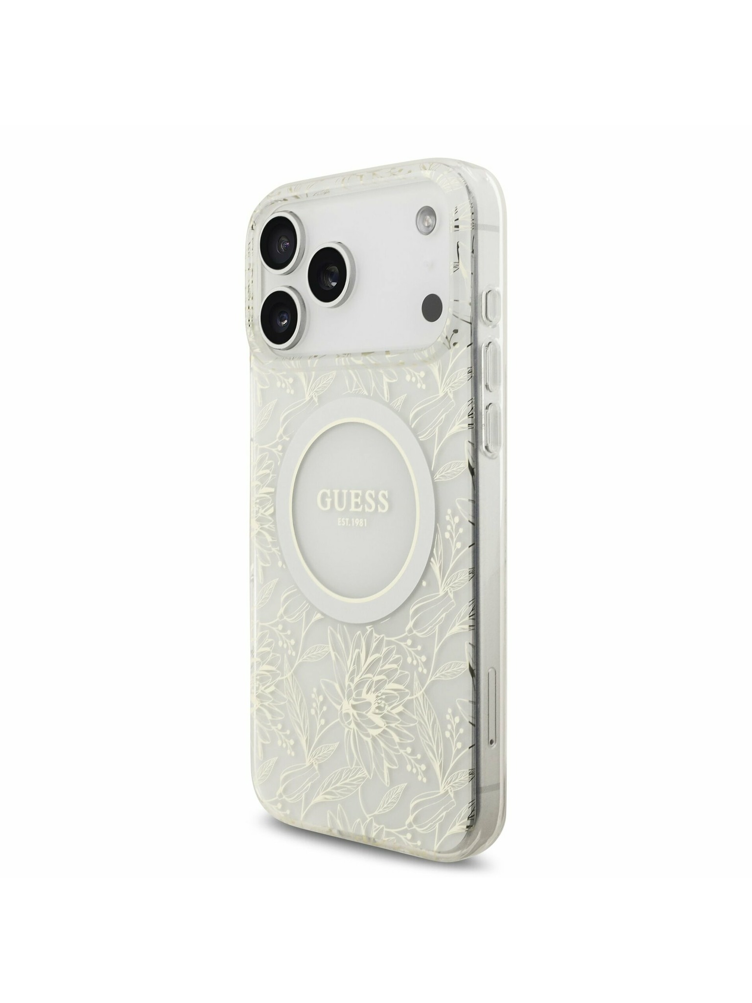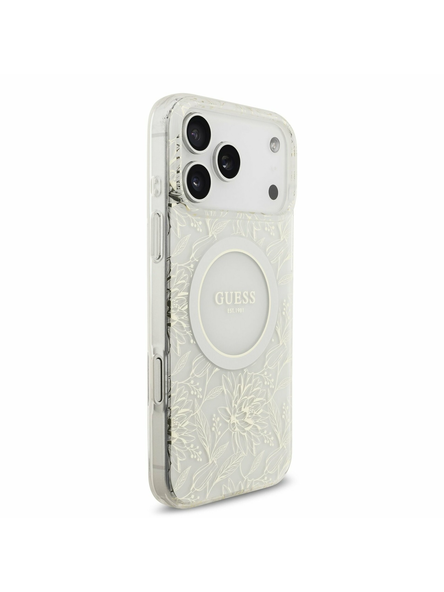 Guess IML Flowers Allover Strap MagSafe Stražnji poklopac za iPhone 17 Pro White