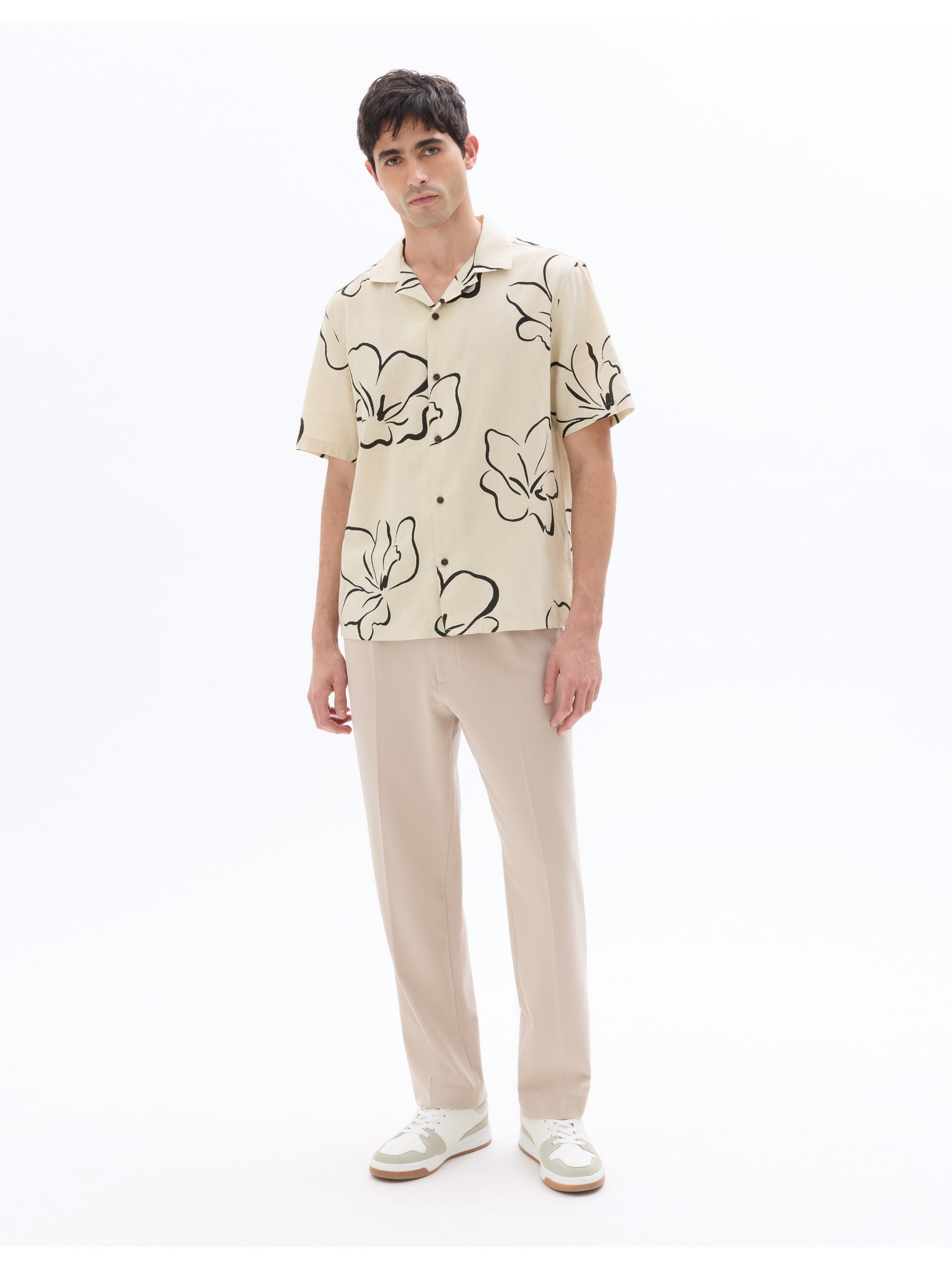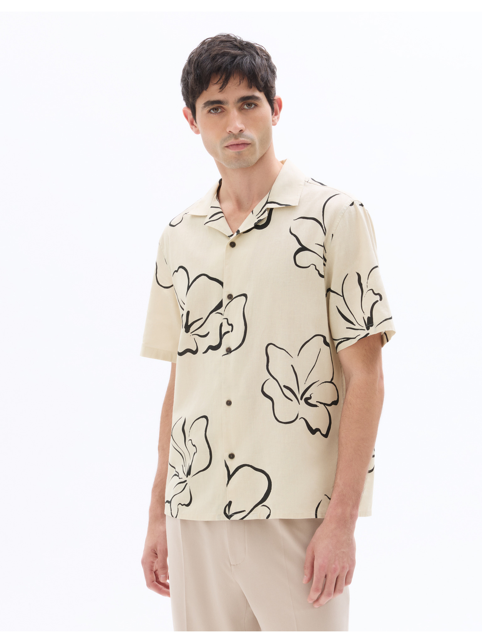 Celio Damopoc bež muška lanena košulja