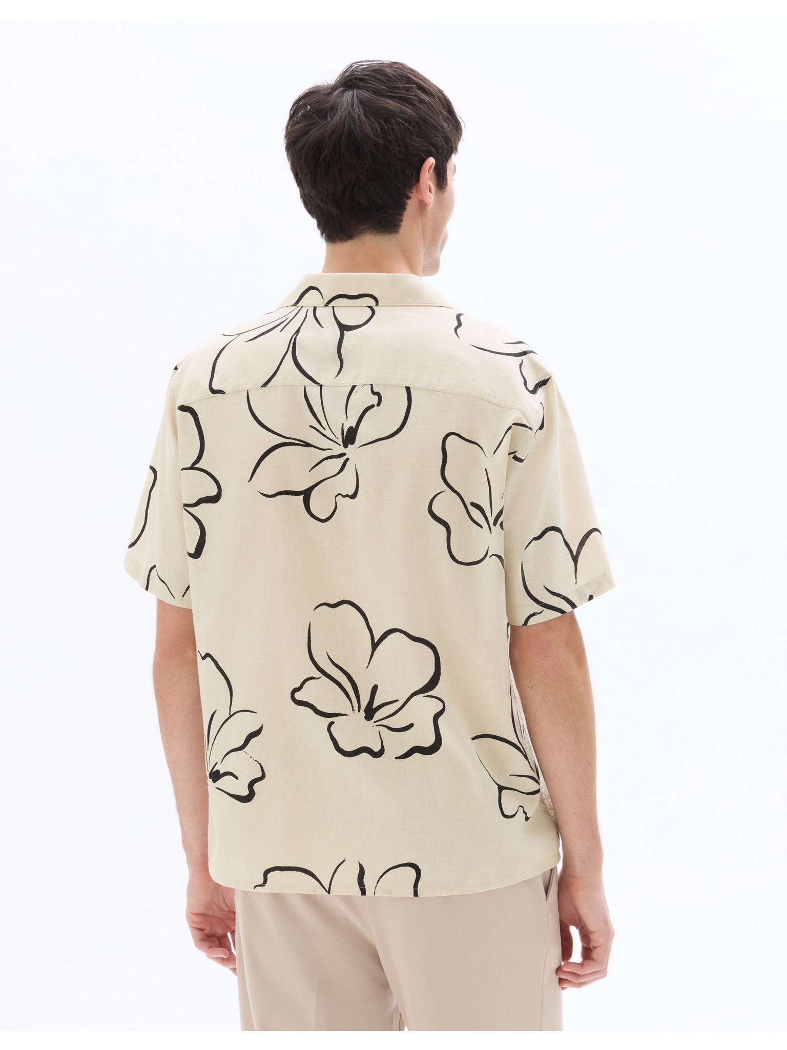 Muška košulja s kratkim rukavima i kubanskim ovratnikom bež Ombre odjeća
