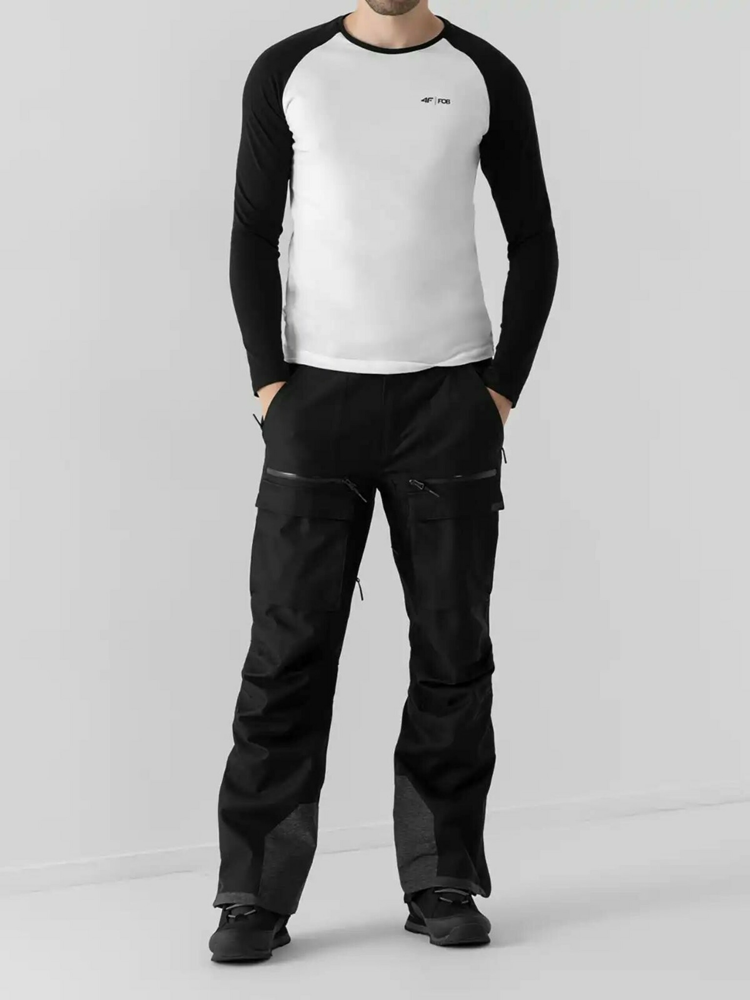 Muška pamučna majica s dugim rukavima i okruglim vratom - bijela V3 OM-LSPT-0136 Ombre Clothing