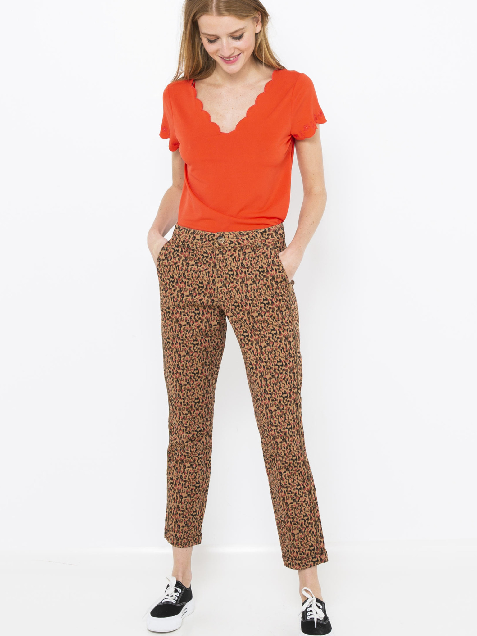 Narančaste ženske prugaste lanene hlače ORSAY