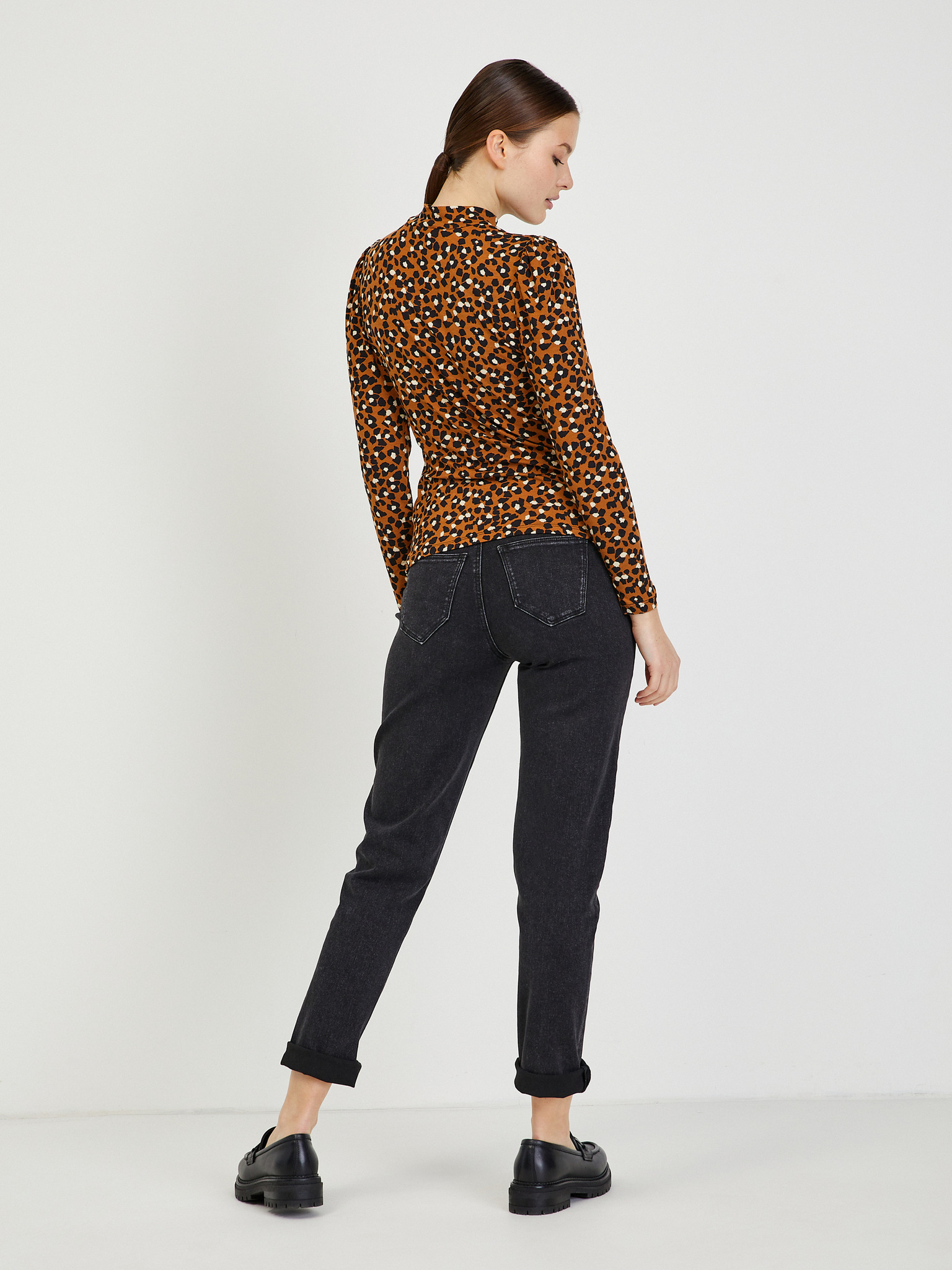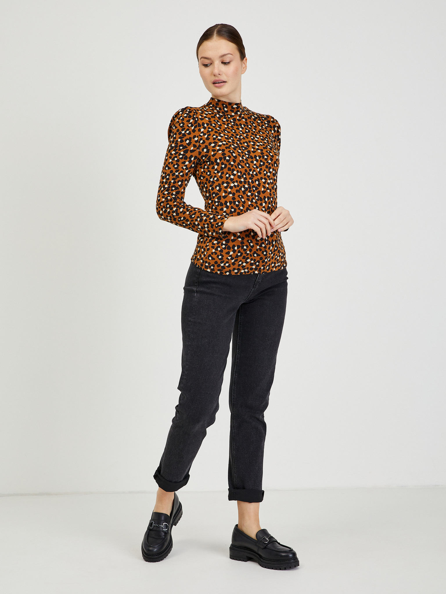 Smeđi ženski top s dugim rukavima