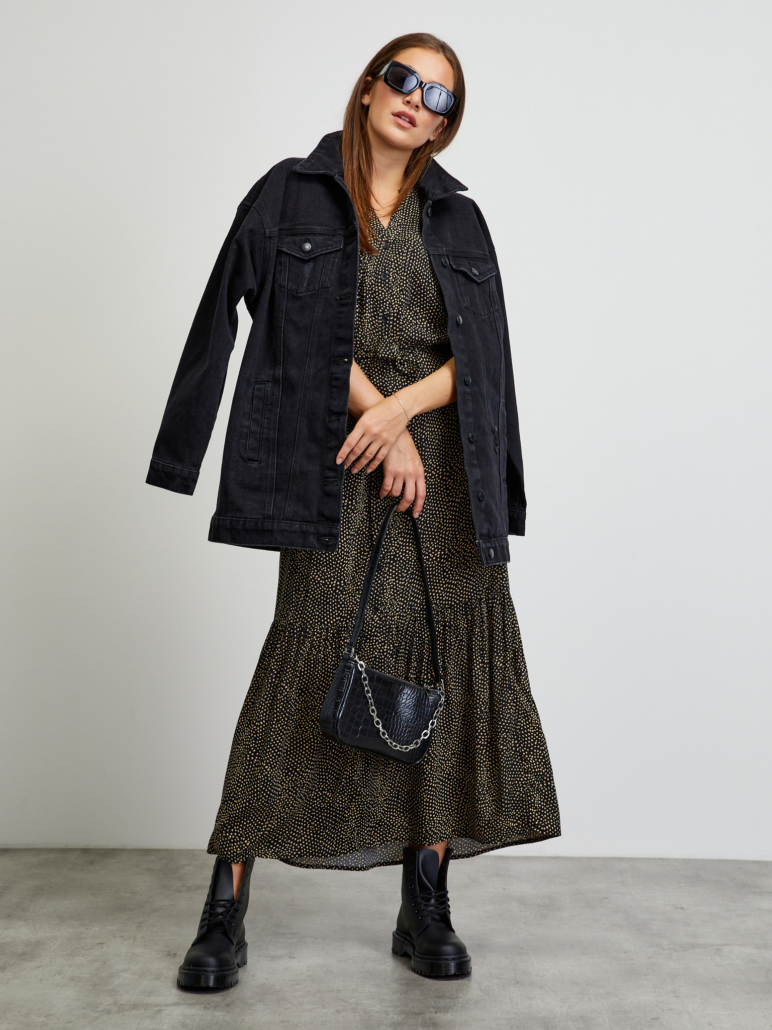 Crna široka haljina s uzorkom METROOPOLIS by ZOOT.lab Eustacia