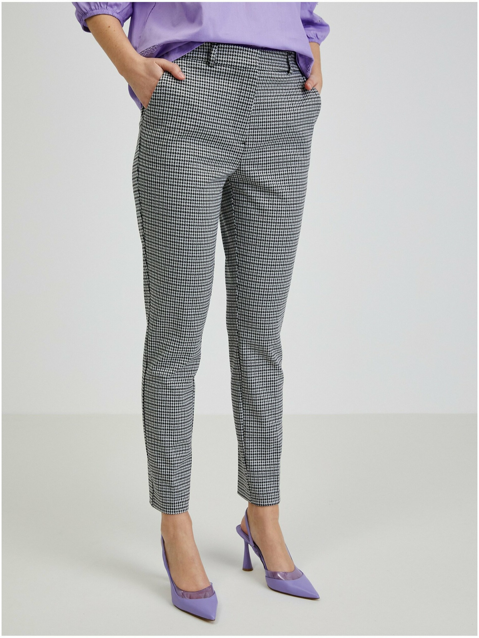 Bijelo-crne ženske hlače s uzorkom ORSAY