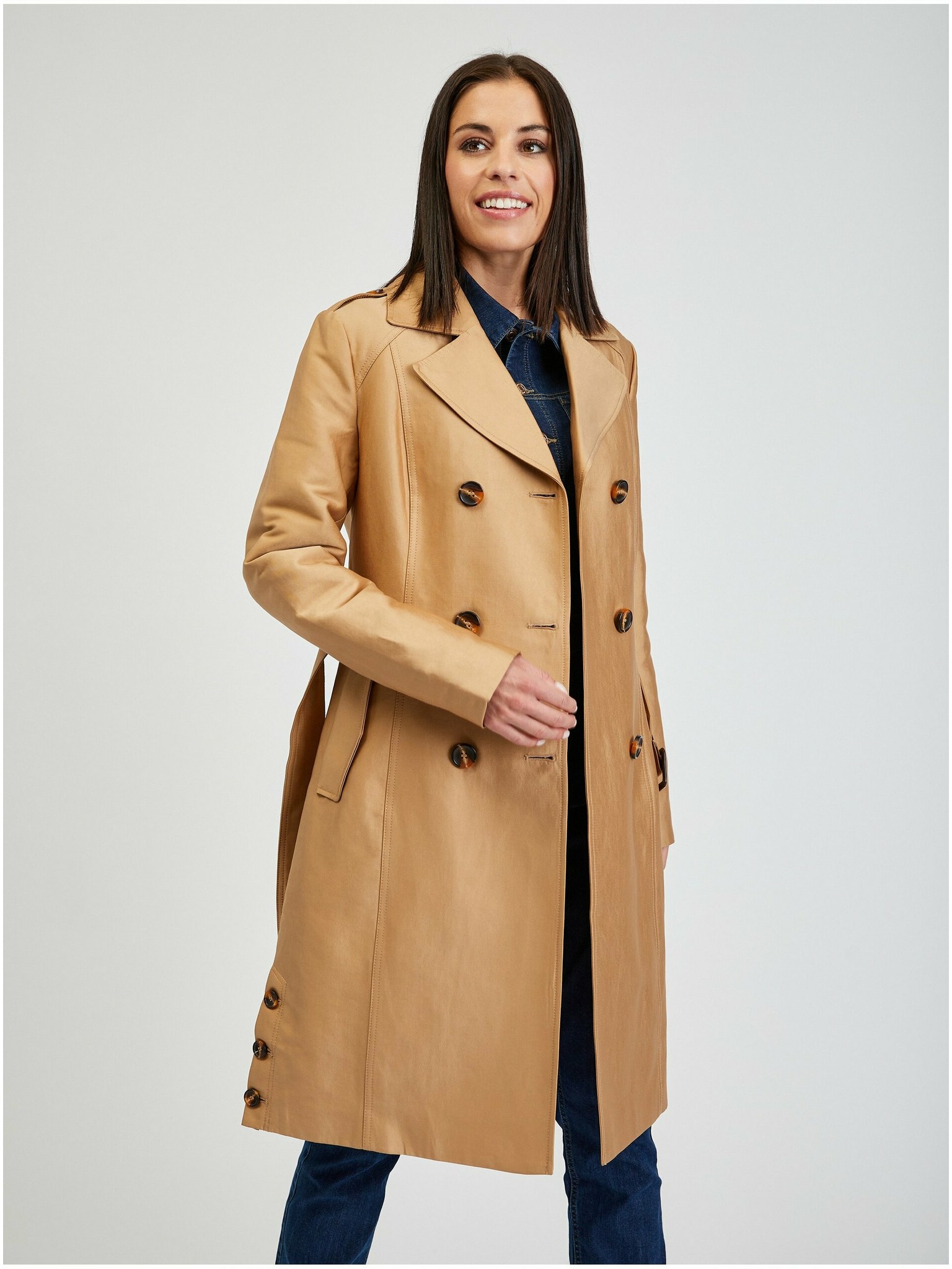 Dugački trench kaput s pojasom, visok udio pamuka Marks & Spencer smeđa