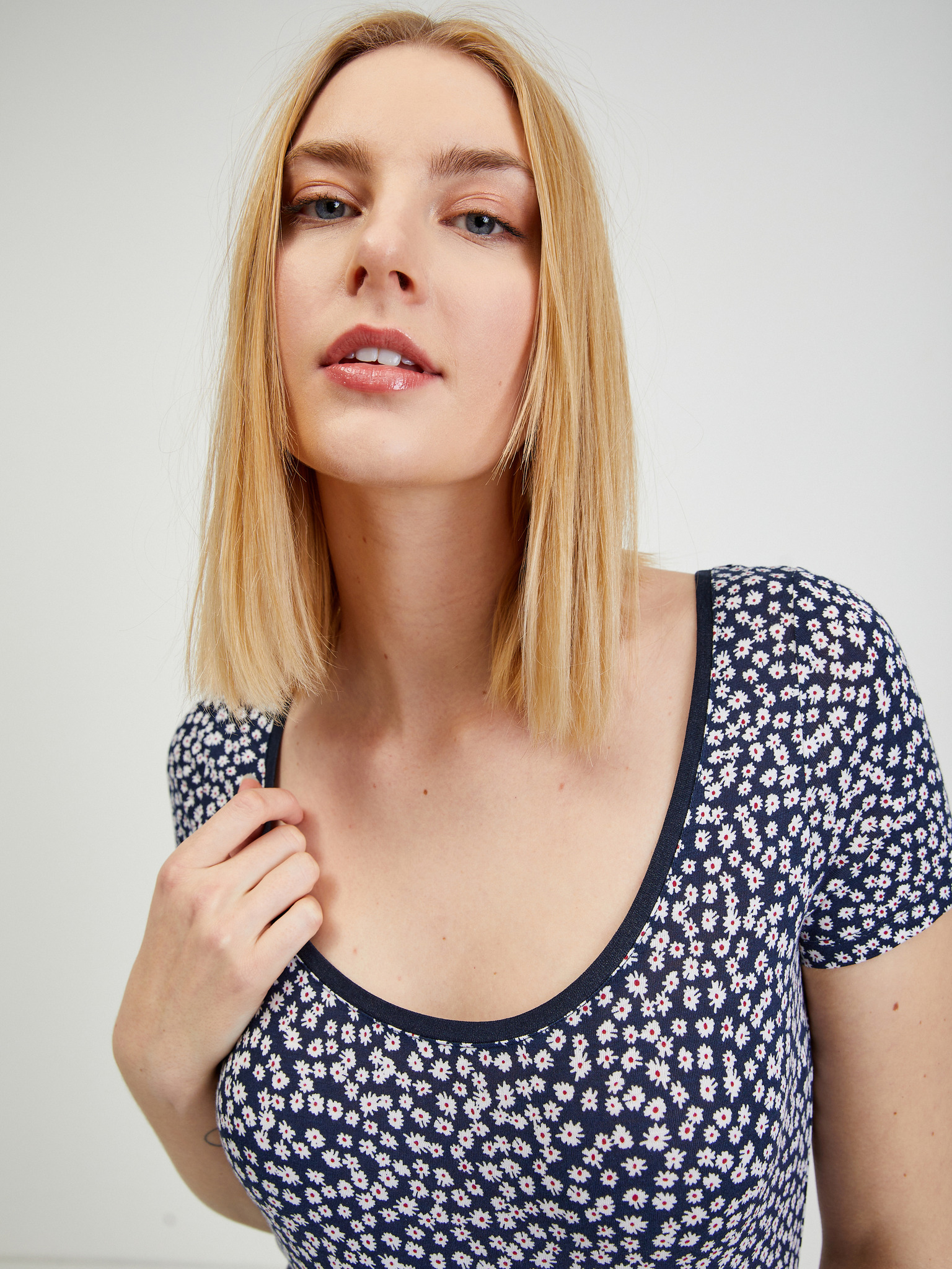 Tamnoplava ženska majica cvjetnog uzorka ORSAY