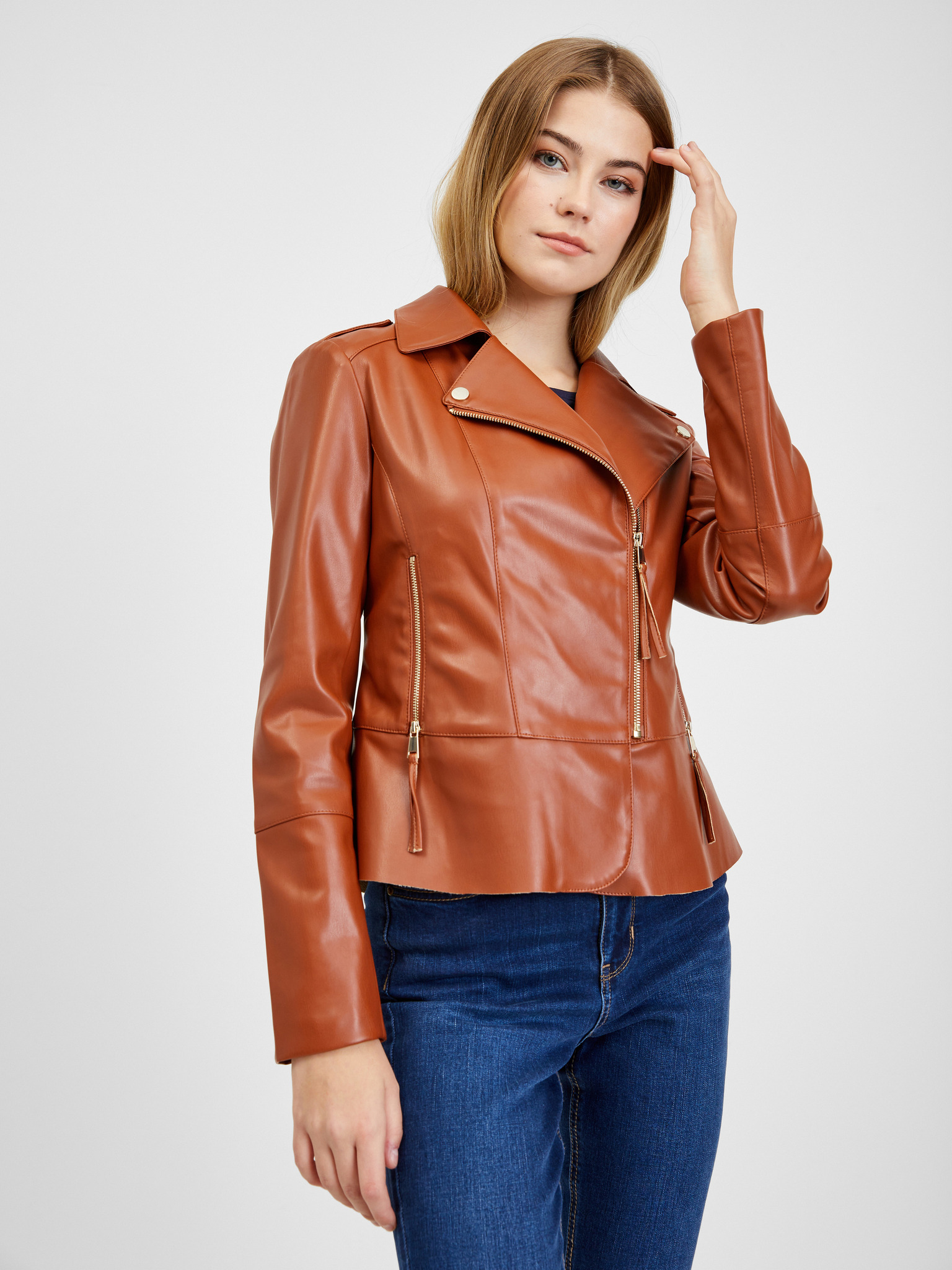 Smeđa ženska kožna jakna ORSAY