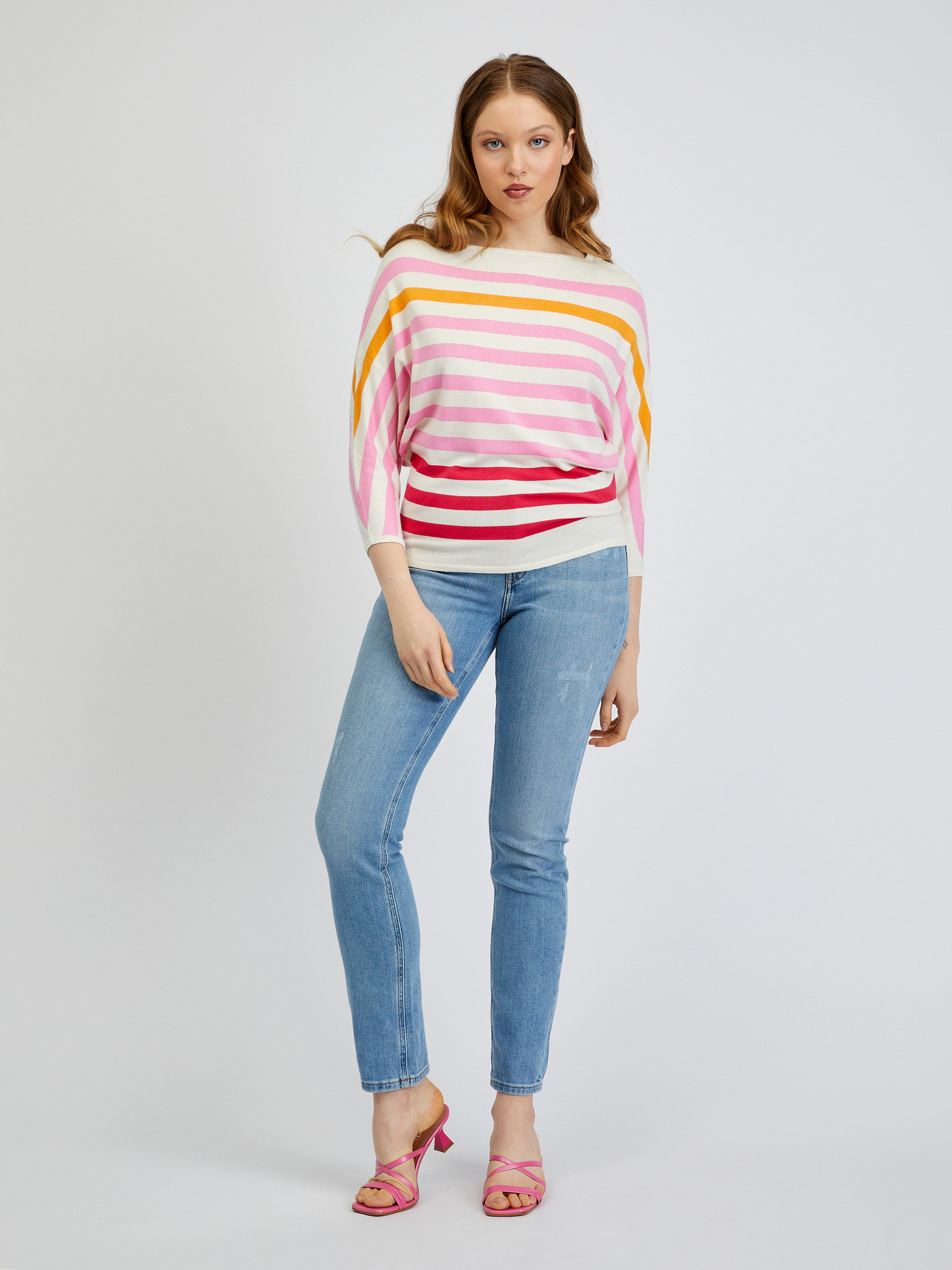 Ružičasto-kremasti prugasti ženski džemper ORSAY