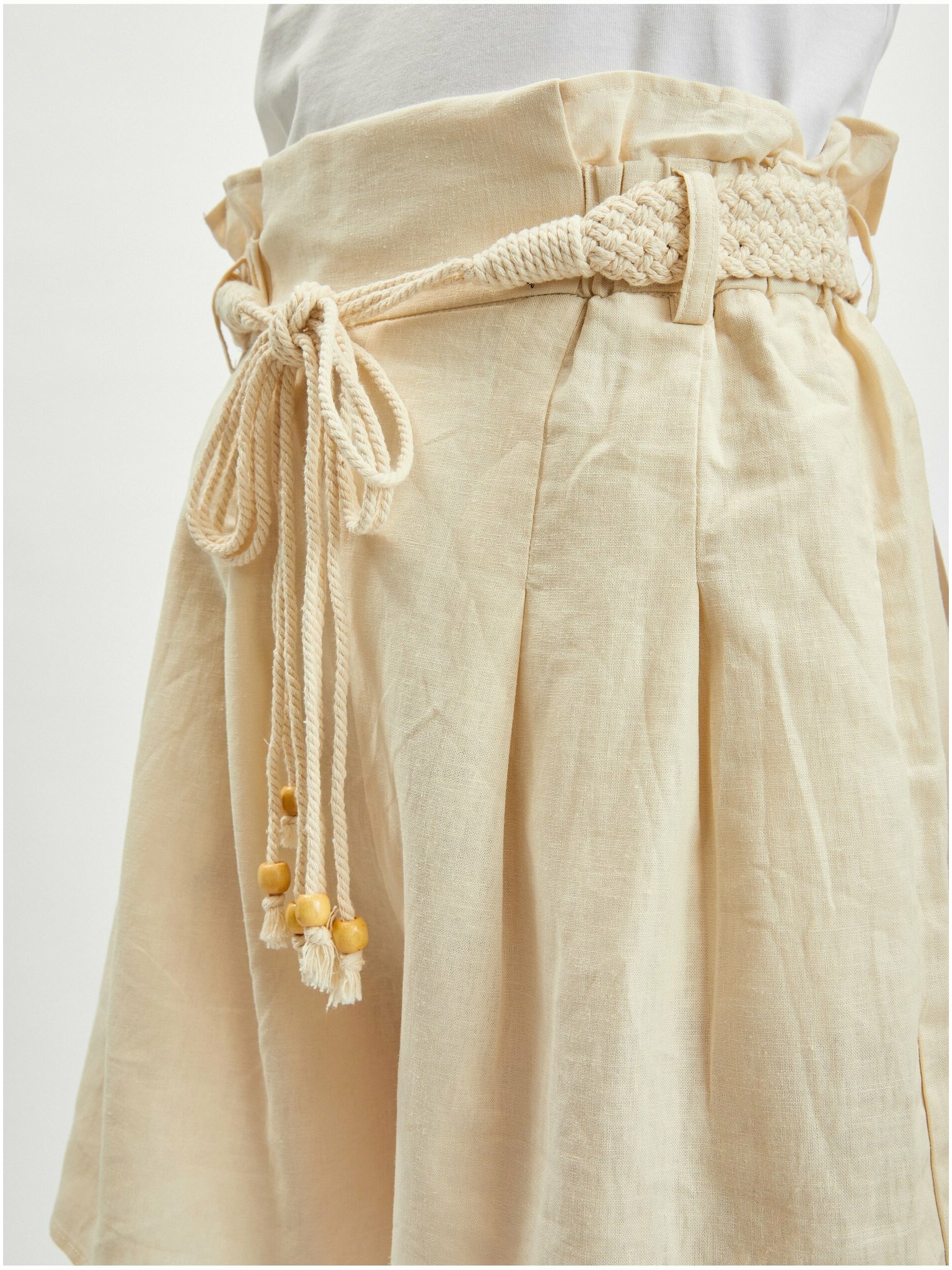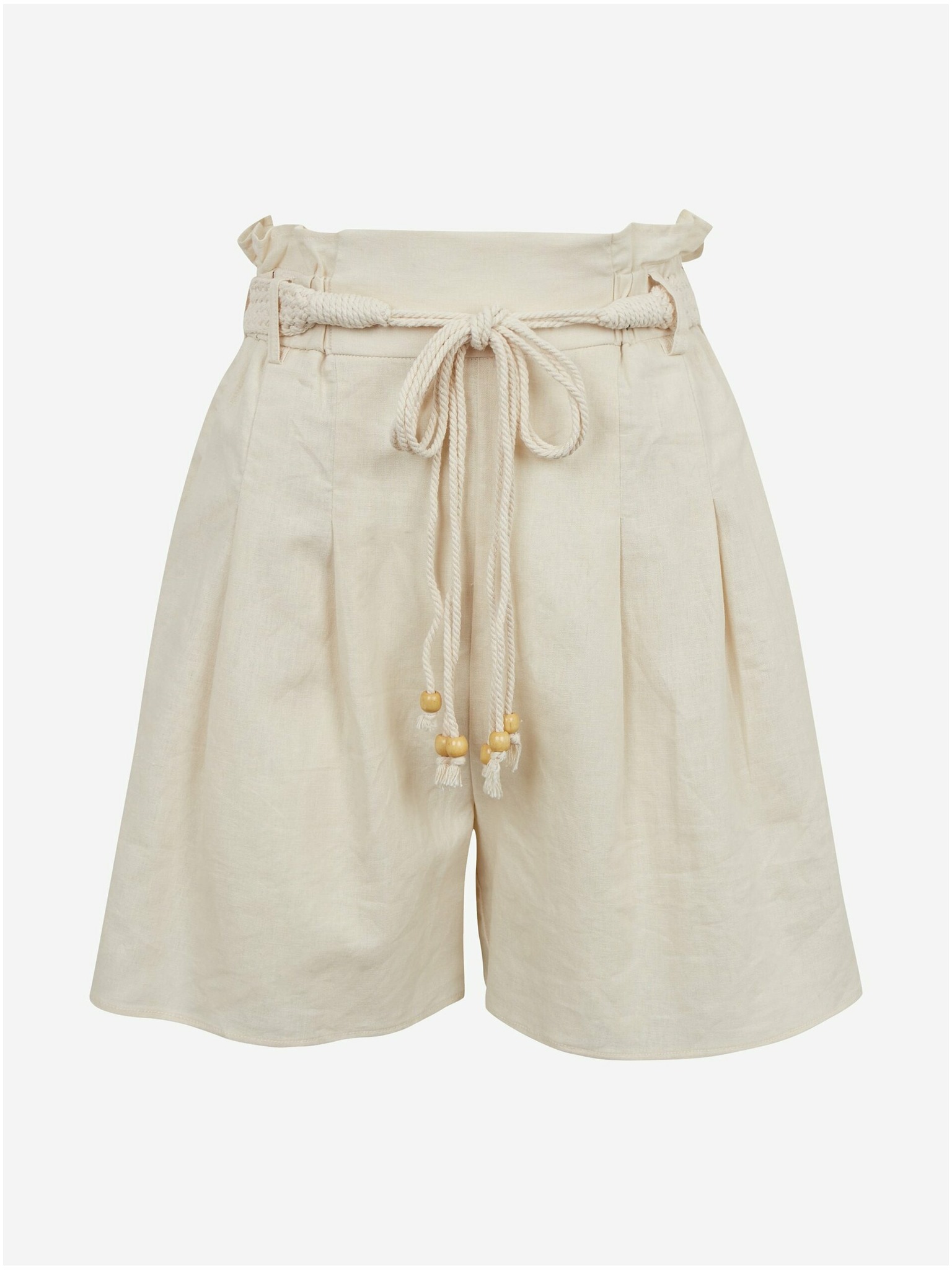 Bež ženske kratke hlače na pruge s dodatkom lana ZOOT.lab Jade