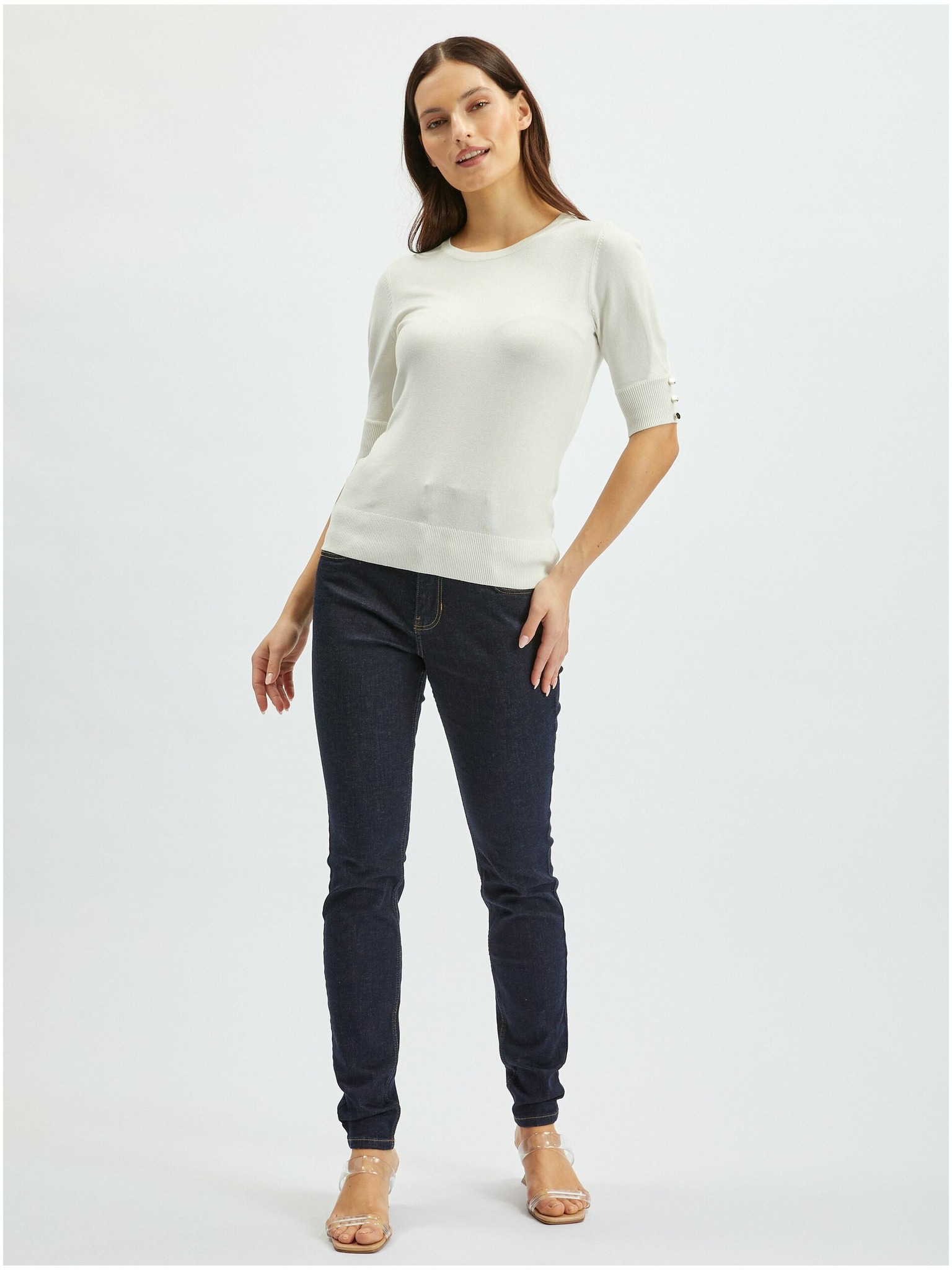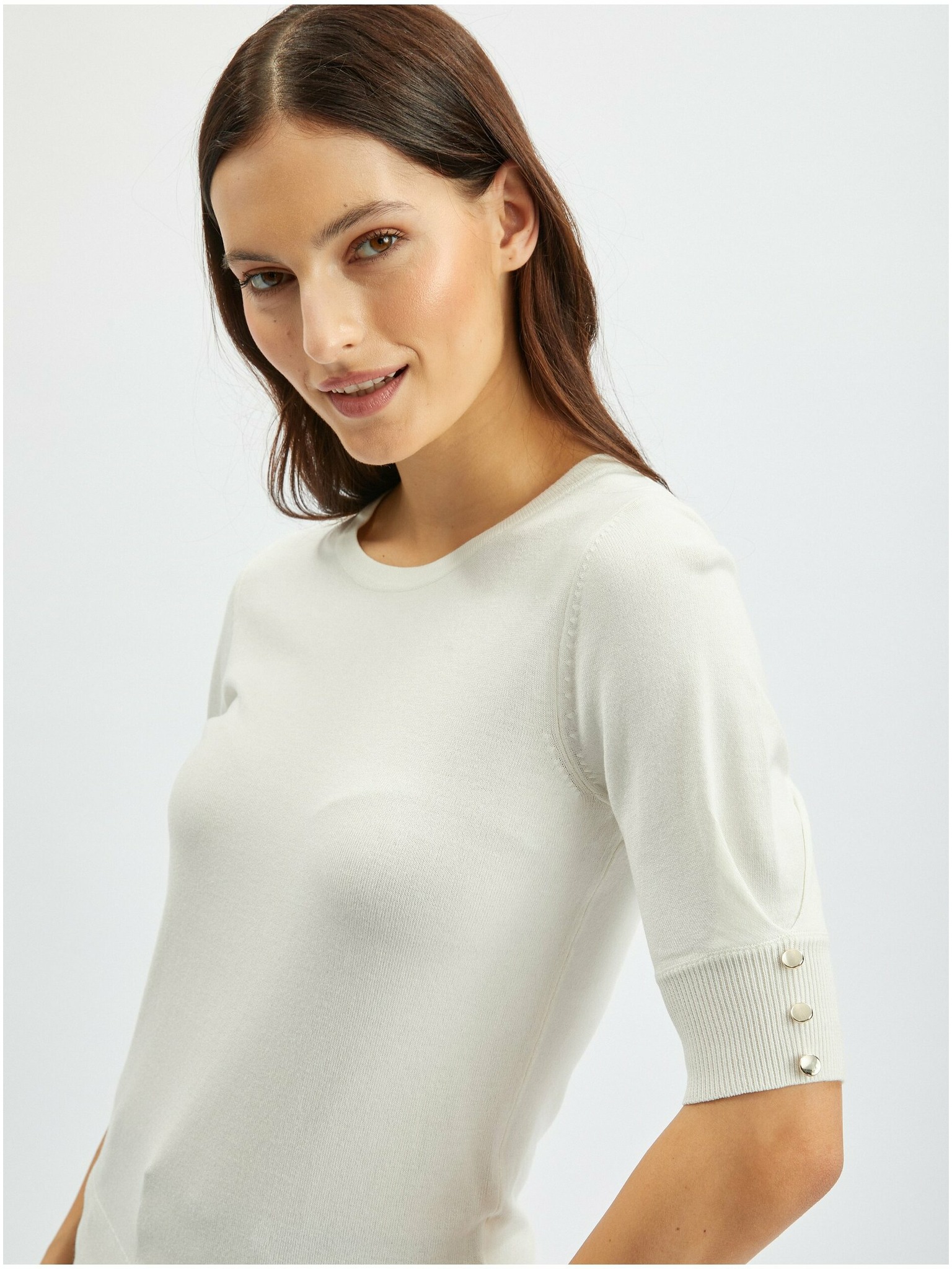 Bijeli džemper s V-izrezom
