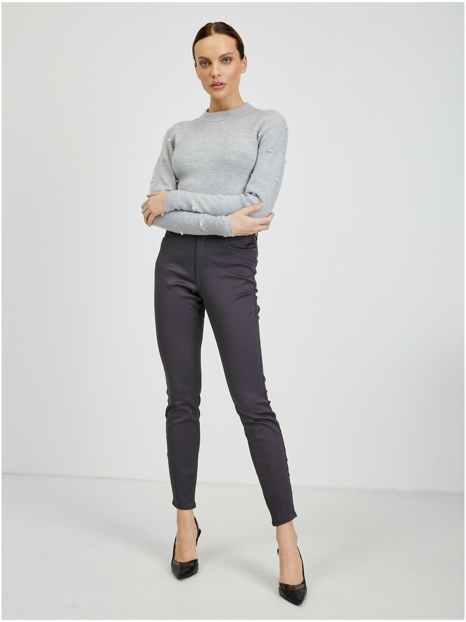 Sive ženske hlače od umjetne kože ORSAY