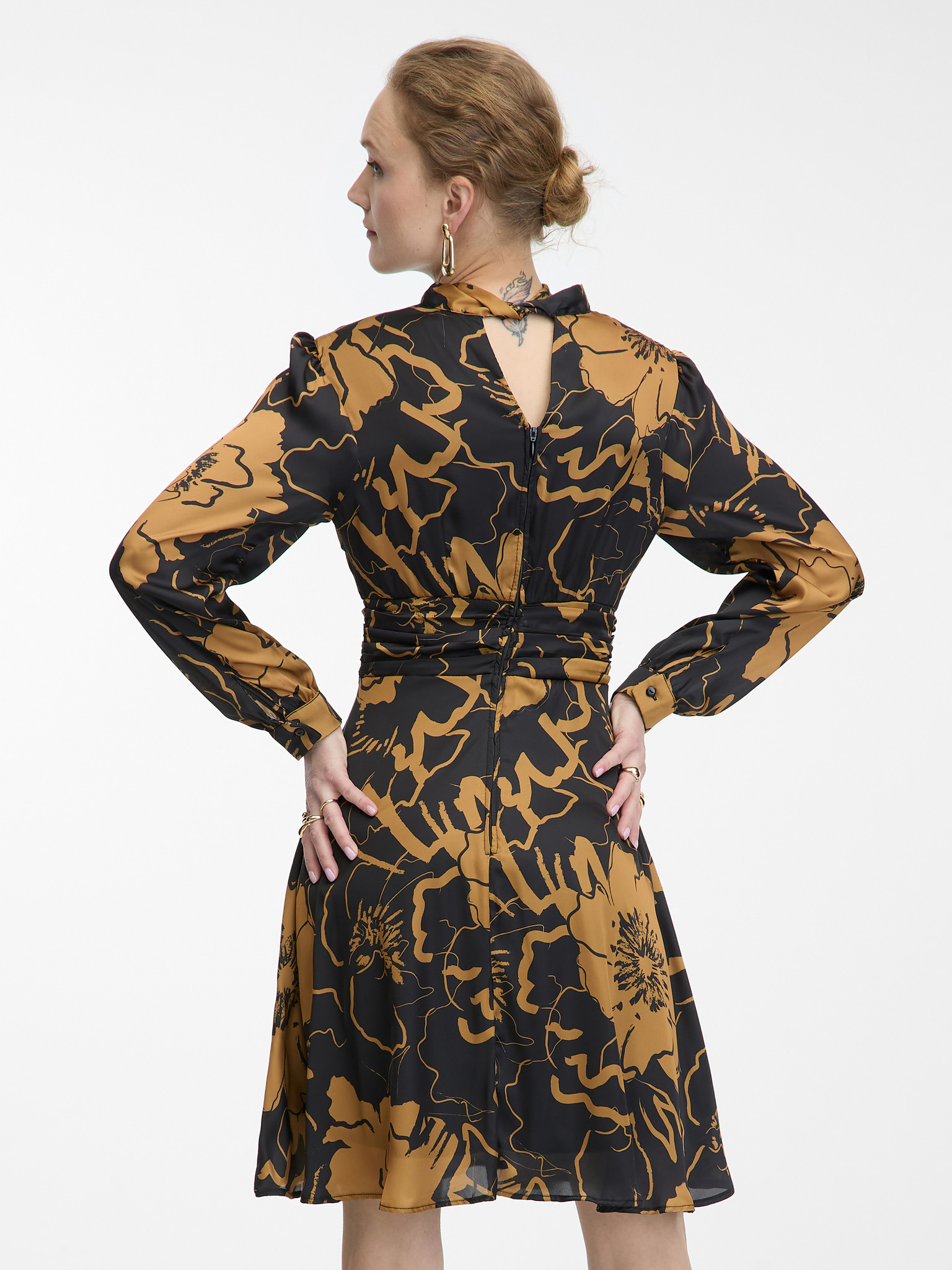 Smeđe-crna ženska satenska haljina cvjetnog uzorka ORSAY