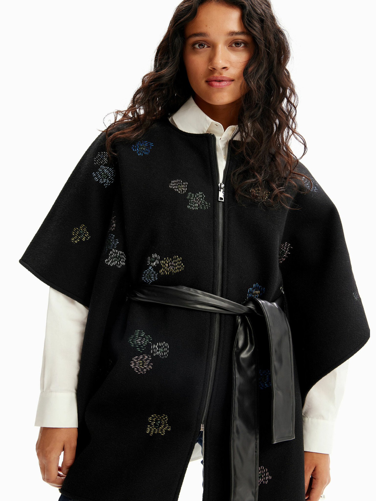 Crni ženski pončo s uzorkom Desigual Threadflor Milan