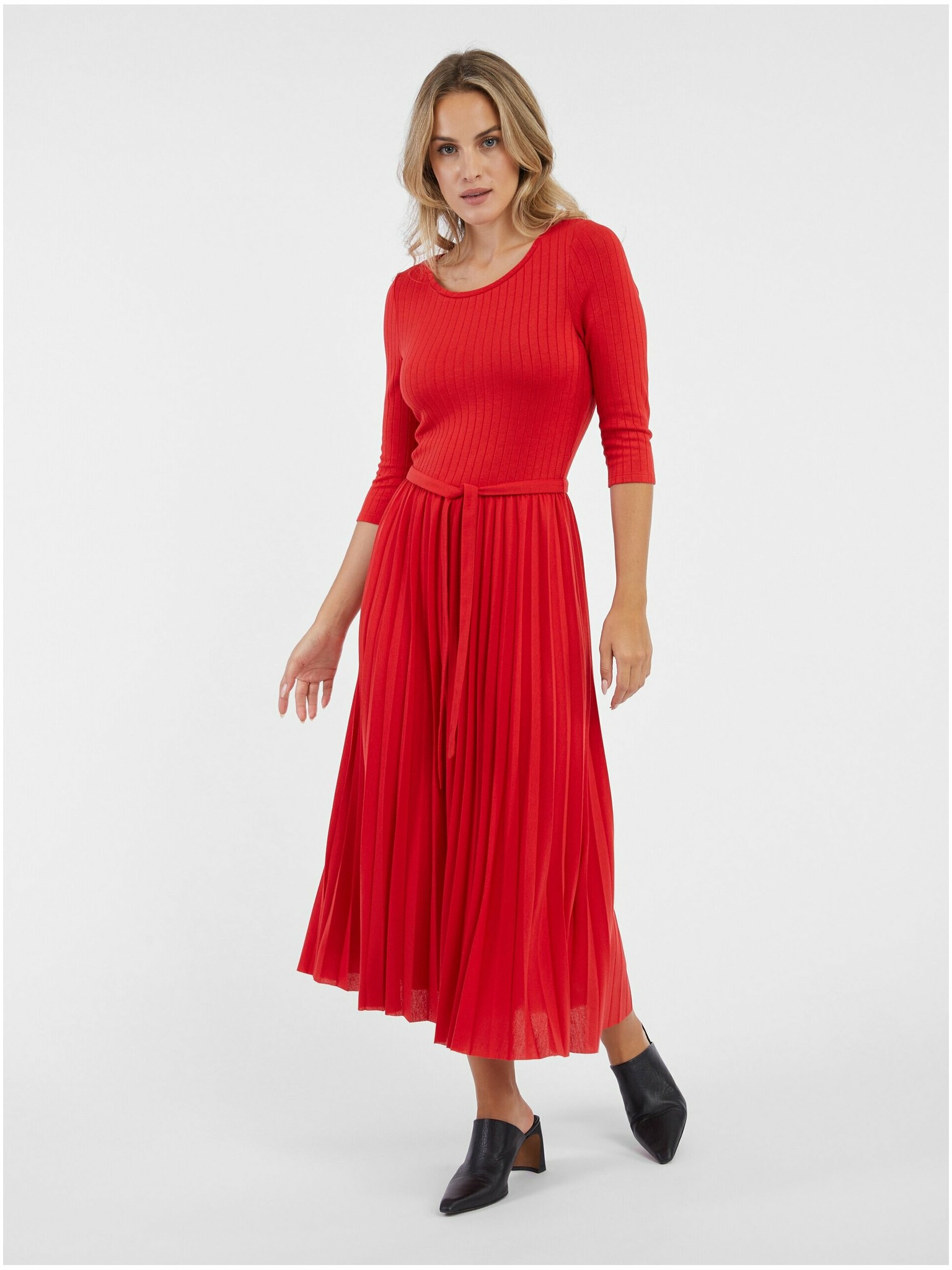 Crvena midi haljina s volanima marke Moodo