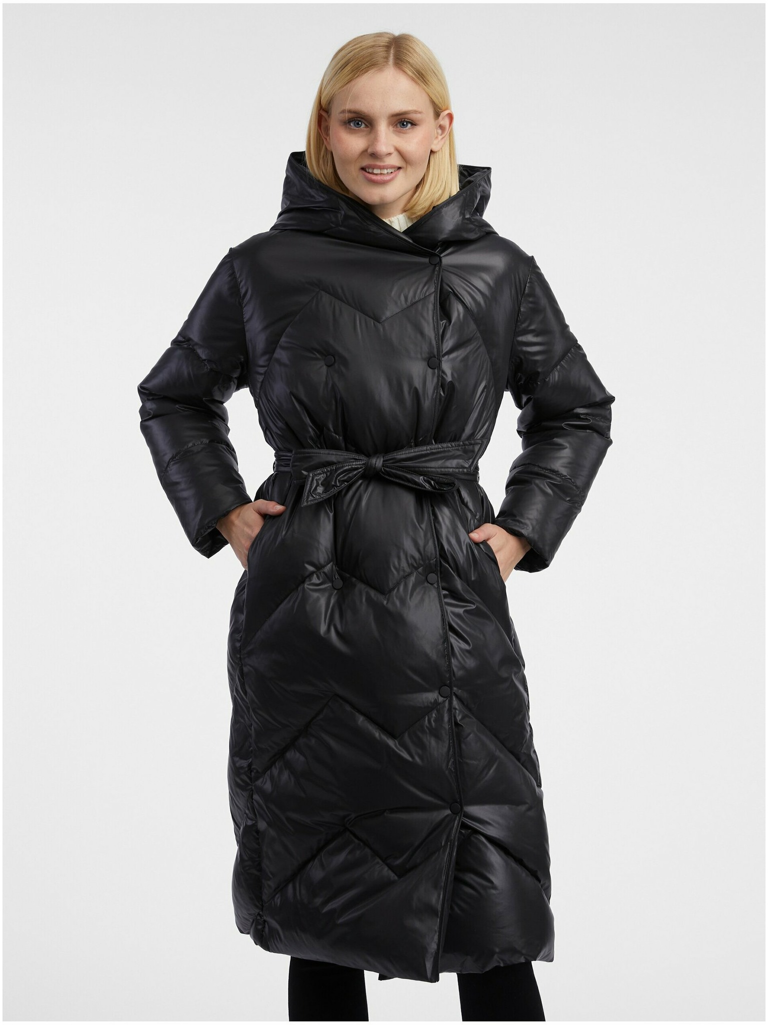 Crni ženski prošiveni kaput od perja ORSAY