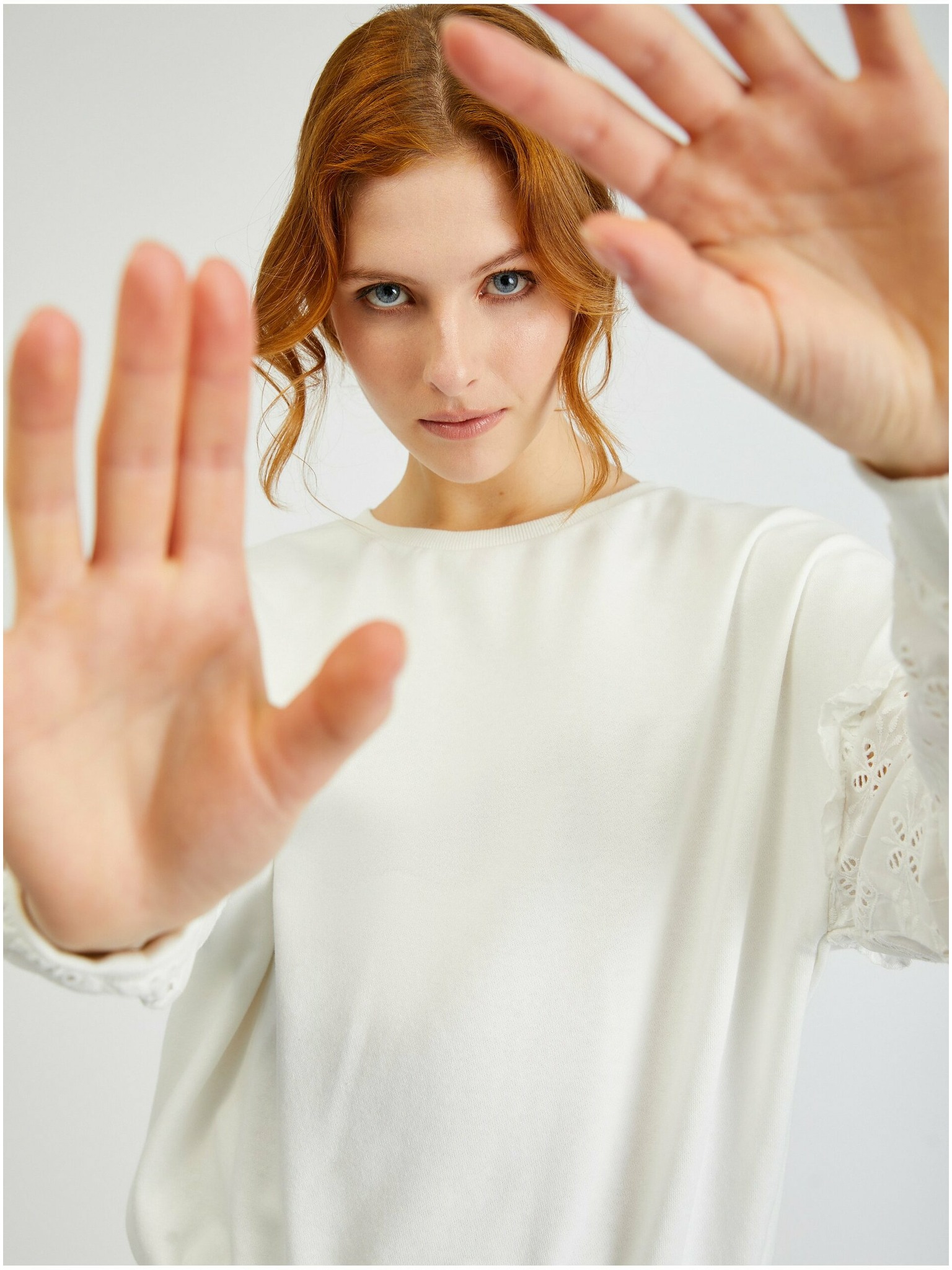Bijeli džemper s balonastim rukavima